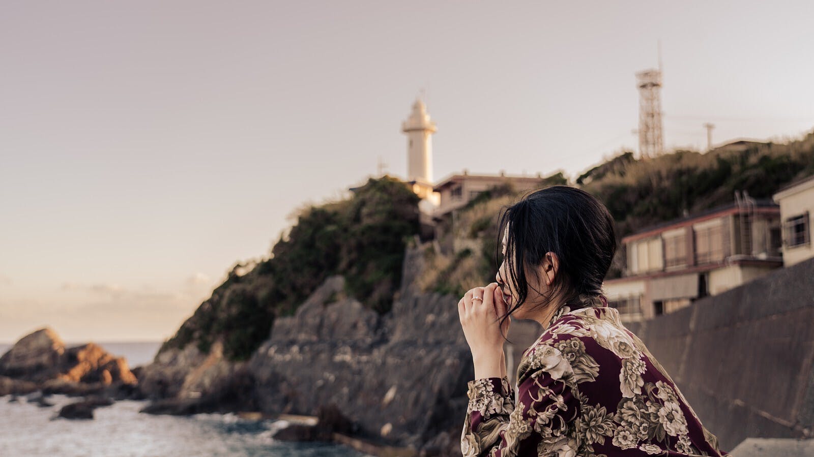モデルの相原さんとコラボし【灯台とのポートレート写真】テスト撮影の1コマです。