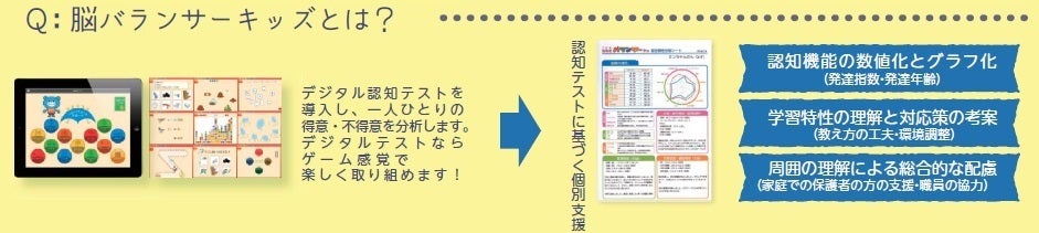 ①デジタル認知テスト『こども脳機能バランサー』を導入します。