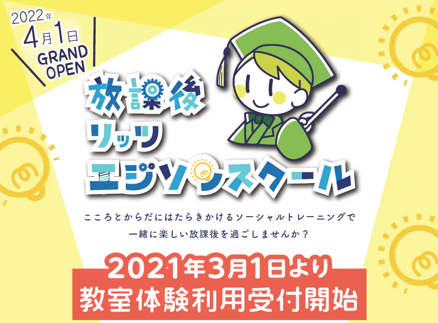 児童発達支援と放課後等デイサービスを運営するための許可申請中の状態で、3月1日にプレオープン、4月1日にグランドオープン予定です。