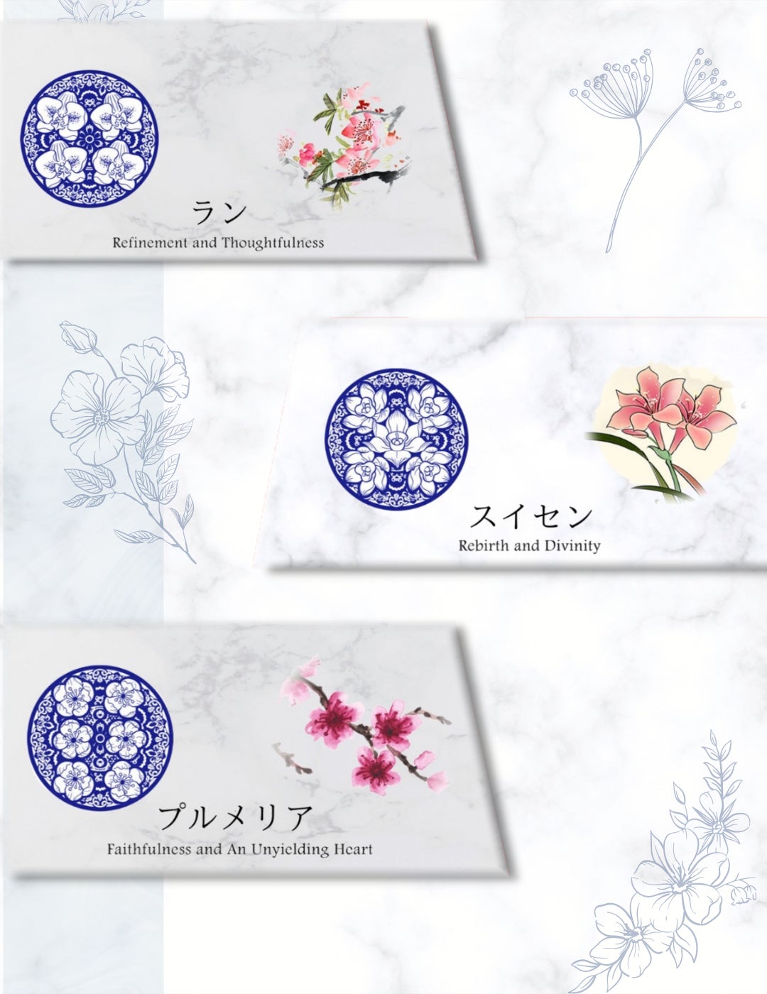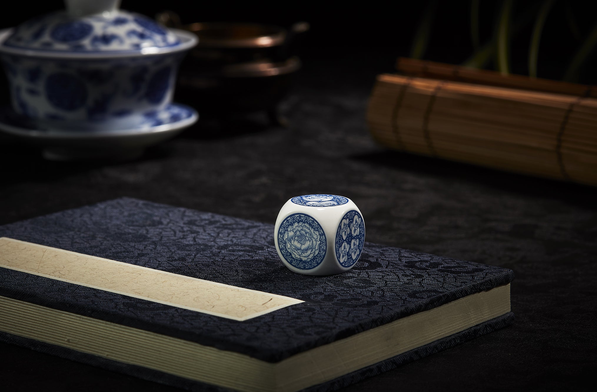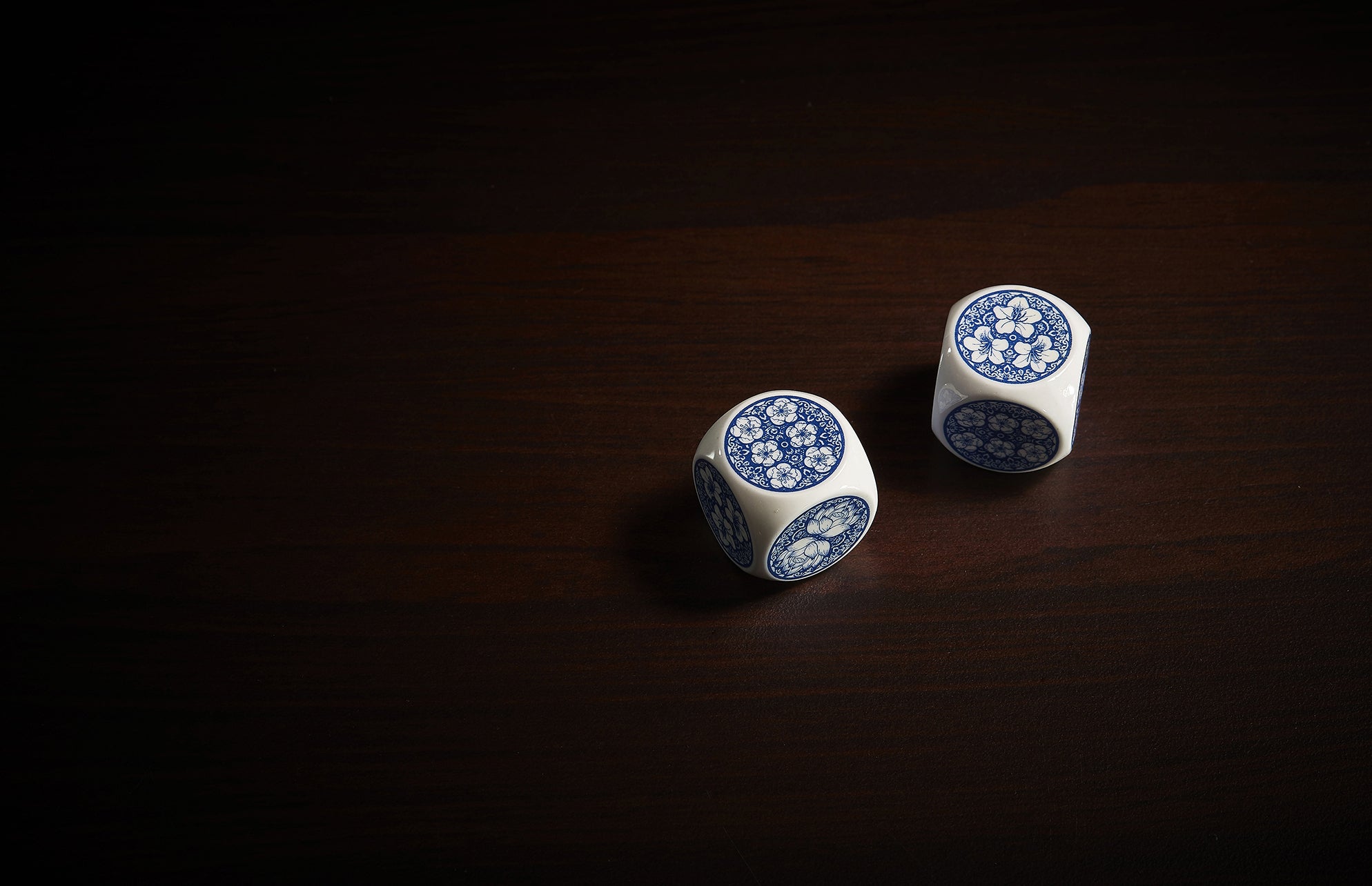 陶器は新石器時代から登場し、シンプルな機能性製品から古代の宮廷で使用された芸術作品に至るまで、現代の陶磁器製品は実用性に加えて高水準でエレガントなイメージを維持しています。青と白の陶磁器は高級感を表現するために、プロのイラストレーターを招き、サイコロの模様をデザインしました。サイコロの模様は、美しいだけでなく、数字が明確にわかる必要があります。デザインされている花は伝統の花を6つを選び、それぞれ意味を持っています。