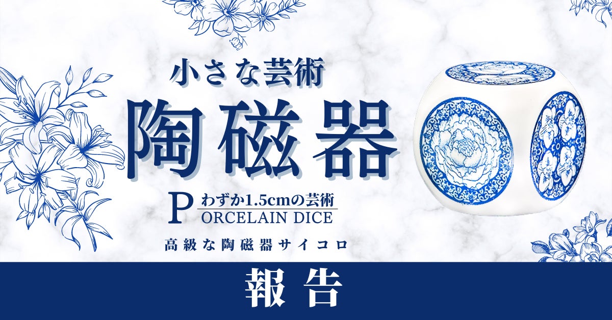 ご支援者の皆様ページをご覧の皆様お世話になっております。高級陶磁器サイコロのプロジェクト終了まで残り5時間となりました。昨日、本日も多くのご支援をいただきましてありがとうございます。応援コメントで「素敵」や「すごい」など陶磁器サイコロへのコメントをいただきとても嬉しく思います。プロジェクト期間中では最後の活動報告になります。このサイコロを最初に持った時陶磁器サイコロは想像より重量感があり、最初に触れた時の冷たい感じから生命があるかのように徐々に暖かくなっていく感覚がありました。その時はボッーとしながら、陶磁器サイコロをずっと握ってました。 最初は強度があるから大丈夫だとわかっていてもが振るのは少し怖かったですが、今ではボードゲームや運試しの時に振っています。ご支援者の方も是非サイコロとしても使ってみてください。残り5時間で終了になりますので、今回は5の目で活動報告を締め括りたいと思います。ご検討されてる方は是非よろしくお願いいたします。