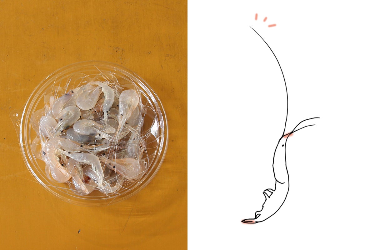地元料理店さんも、コロナの影響は甚大でした。卸させて頂いている我々も大変で、これまで取引のないところにも、様々な営業活動をさせていただきました。そんな中で出てきたのが釣り餌です。以前より当店に釣り好きなお客様が、白エビを買い求めに来られていました。お客様に話を聞きますと、「このエビの長いヒゲが揺れて、よく釣れる」や「重みがあるので、底に餌くずれすることなく落ちる。だから底にいるような高級魚が釣れる」という声が。白エビは格好の釣り餌だったのです。そこで、白エビに釣り餌用の匂いづけをし、一尾一尾釣り針に付けやすく加工することで、商品化させていただくことにしました。釣具業界は大手企業さんの商品がたくさんあります。そうした大手さんの商品と差別化するためにも、パッケージが非常に重要です。ぜひご支援とともに、ご意見いただければ幸いです。