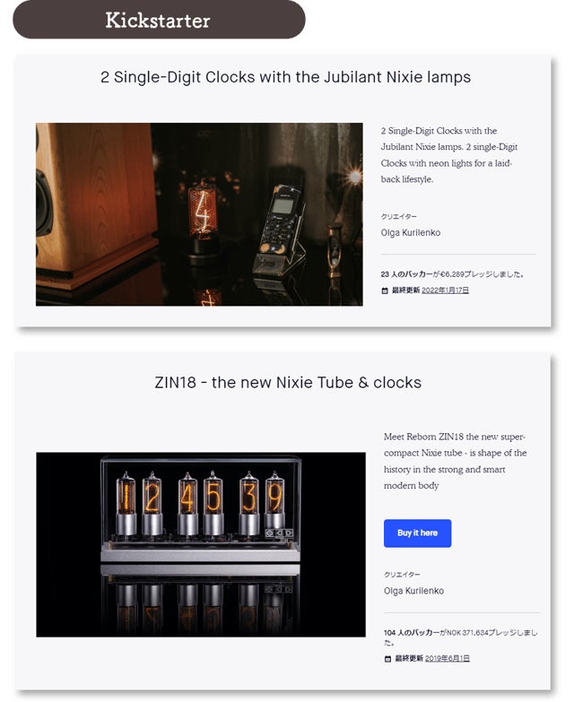 2022年8月にmachi-yaで実施した「ニキシー管置き時計」のプロジェクトでは、目標金額を大きく上回る支援をいただきました。