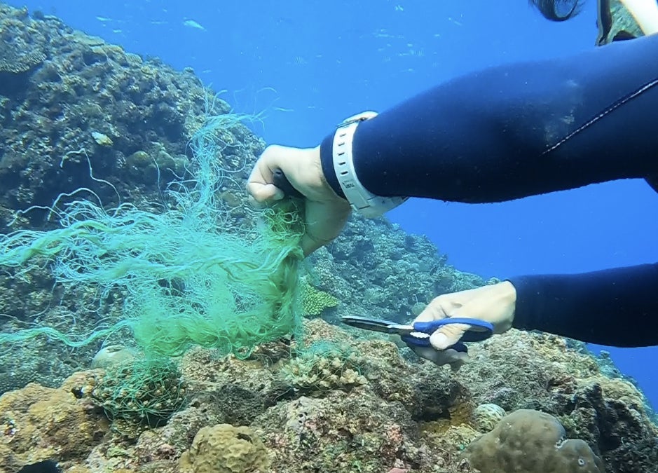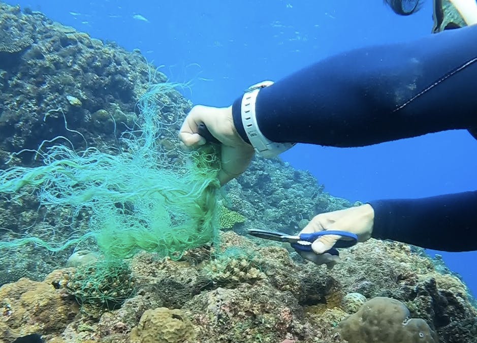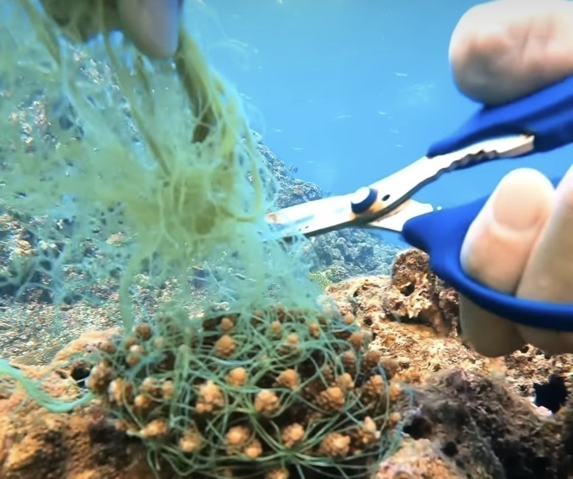 「珊瑚の成長を妨げる漁網」