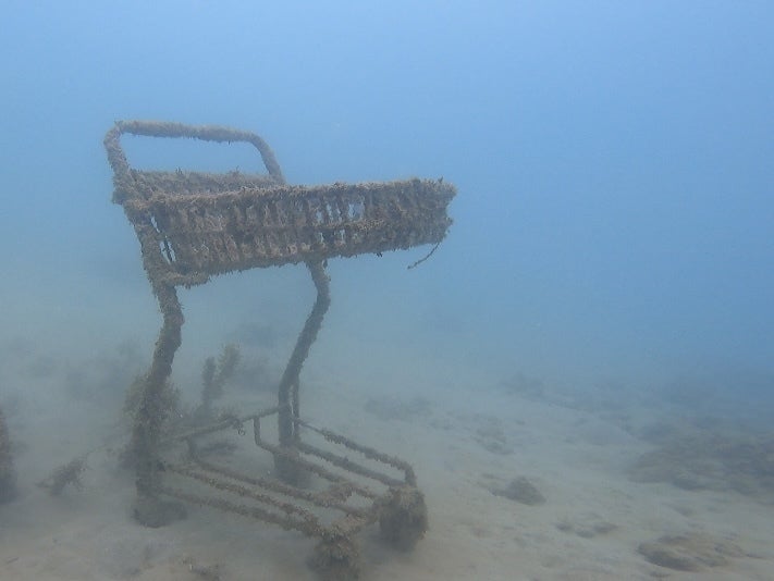 海の一部となったショッピングカート