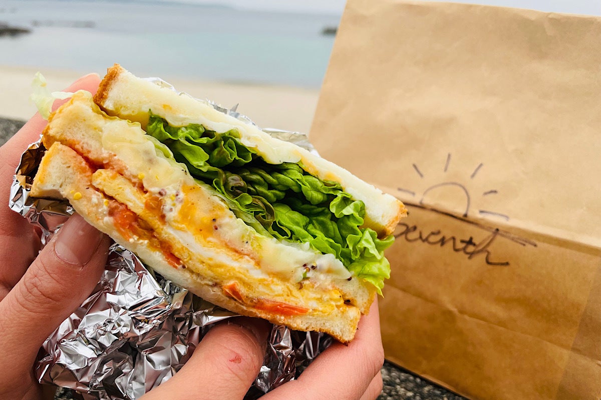 海辺で手軽に食べることができて、お野菜も摂れる。そして何より、元気が出る!!!Seventhのフードメニューは、絶対にサンドイッチ!と迷いなく決定しました。