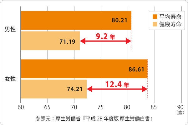 人生100歳以上生きるのが珍しくない現代。しかし、男女共に平均寿命と健康寿命には小さくない開きがあります。健康寿命とは『健康上の理由で日常生活を制限されることなく元気に過ごせる期間』のことです。すなわち、生涯健康で過ごすためには健康寿命を伸ばすことが大切と言えます。