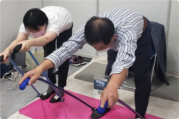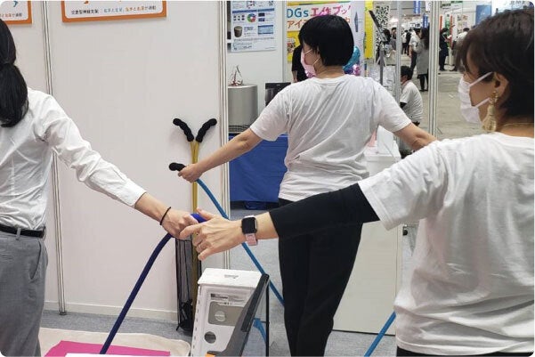 昨年11月に参加した産業交流展の様子これまでプロトタイプを実際にジムでご使用していただいたり、健康イベントや展示会に出展するなどして、たくさんの評価をいただきました。また、より良い製品を目指し、いただいたご意見をもとに製品の改良も行なっています。