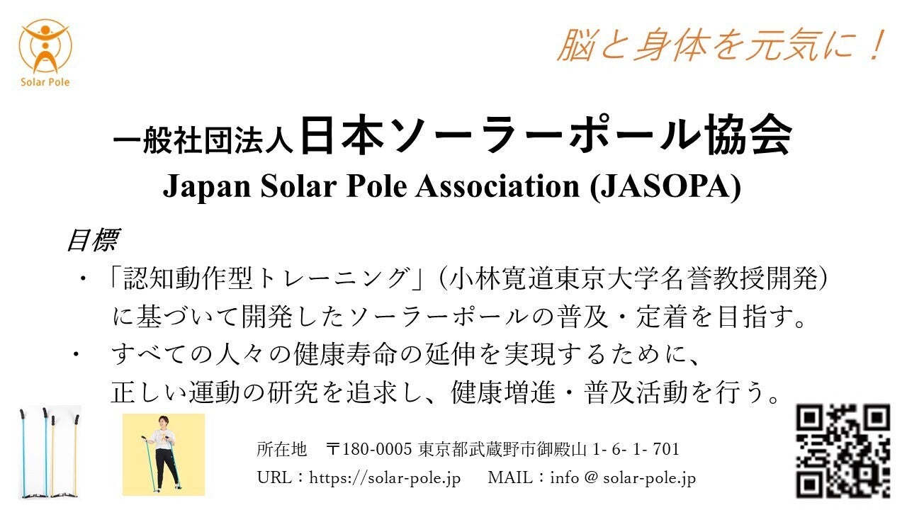 この度、「認知動作型トレーニング」(小林寛道東京大学名誉教授開発)にもとづいて開発しました健康用具「ソーラーポール」をご紹介します。