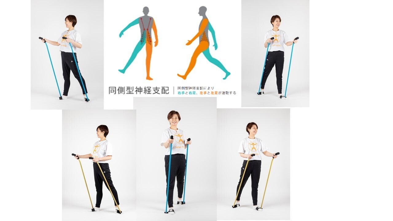 同側支配は普段歩く交差神経支配と異なります。手足を同時に動かすのはなんば歩き、竹馬乗りと同じ動きです。