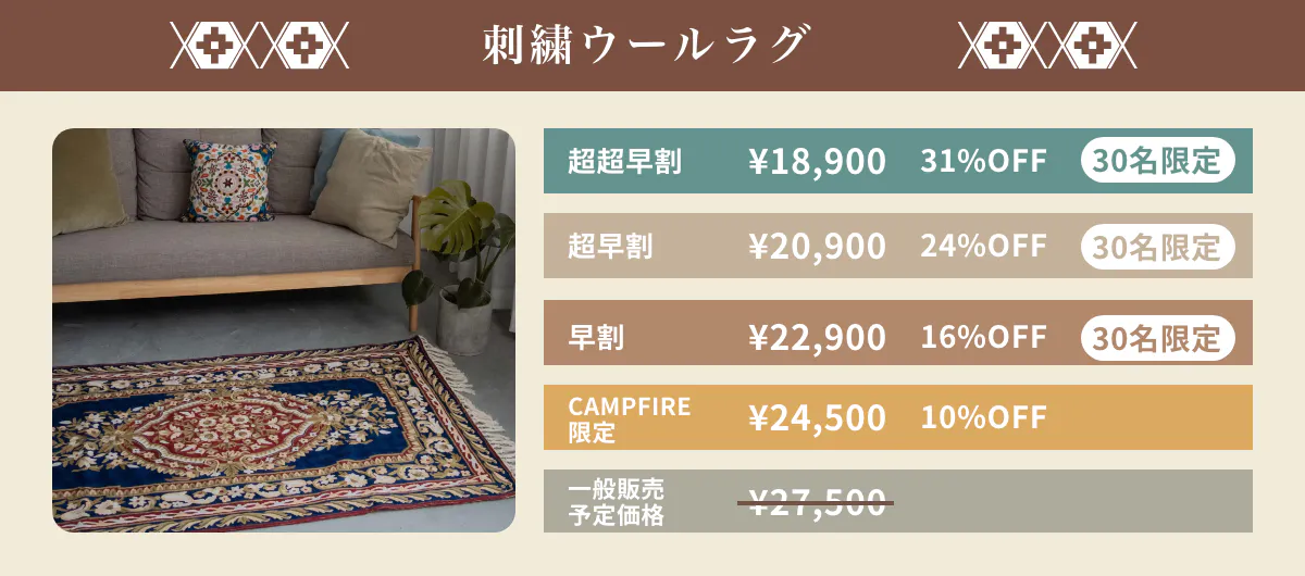 ※本プロジェクトを通して皆様から想定を上回るご支援を頂き、現在進めている環境から量産体制を更に整えることができた場合、正規販売価格が販売予定価格より下がる可能性もございます。