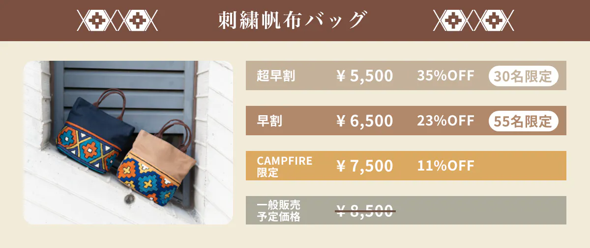 2022/05/28 17:30ご支援頂いた皆様へいつもお世話になっております。この度は当プロジェクトにご支援頂き、心より感謝を申し上げます。お待たせして大変恐縮ではございますが、 5/27(金)より刺繍帆布バッグの発送が始まりました。お手元に届くまで約1~2週間程度かかりますが、お住まいの地域によって異なりますことを予めご了承くださいませ。また、刺繍ラグの発送は6月中旬 ~下旬開始する予定でございます。商品到着まで今しばらくお待ちいただければ幸いです。今後ともご愛顧くださいますようお願い申し上げます。 もっと見る