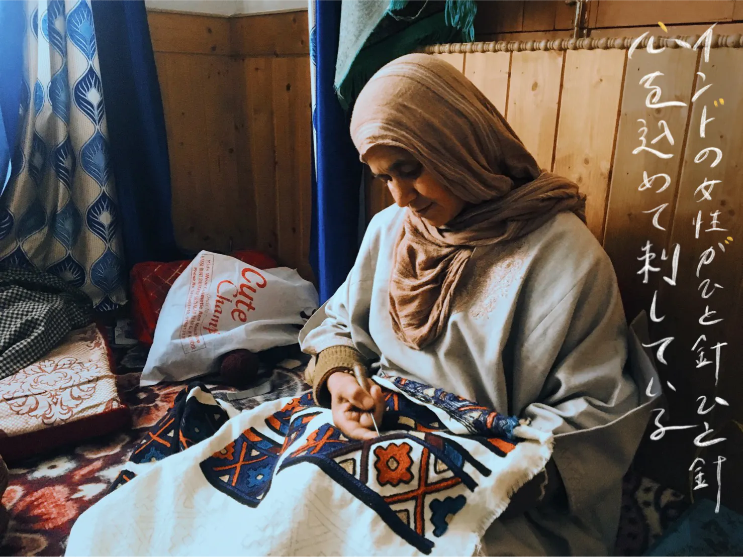 インド・カシミール地方で女性職人がていねいに刺繍と手編みにより製造