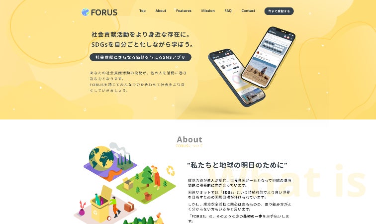 「一人ひとりができる小さな環境保全活動をコツコツと」をコンセプトにした環境保全活動推進SNSアプリ「FORUS」をリリースいたします。