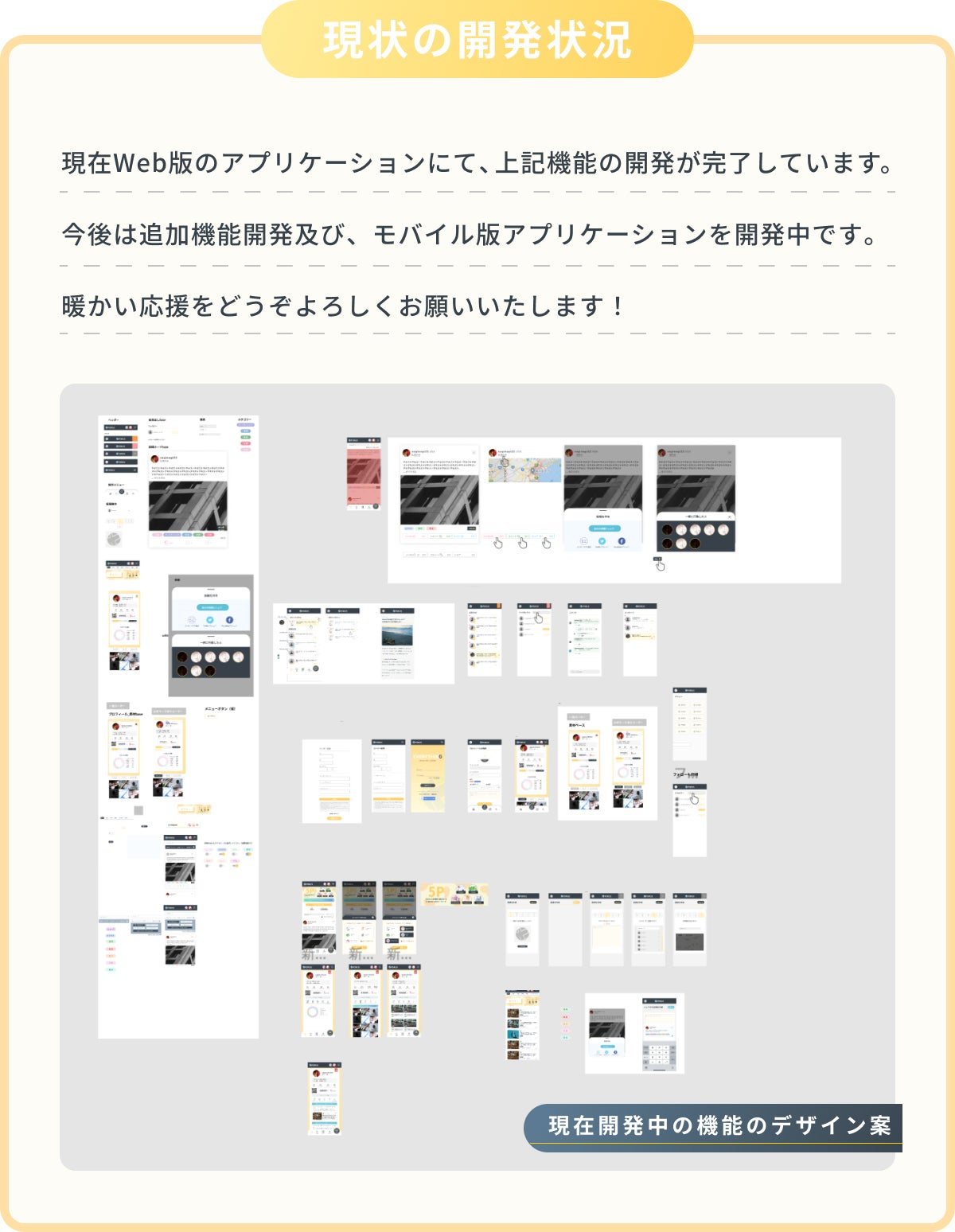 一同、アプリの実現に向けて全力で頑張りますので、応援宜しくお願い致します。