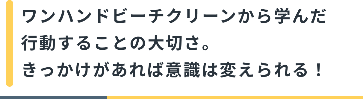 実際に私自身、このワンハンドビーチクリーンをきっかけに環境問題に対する意識が高まりました。