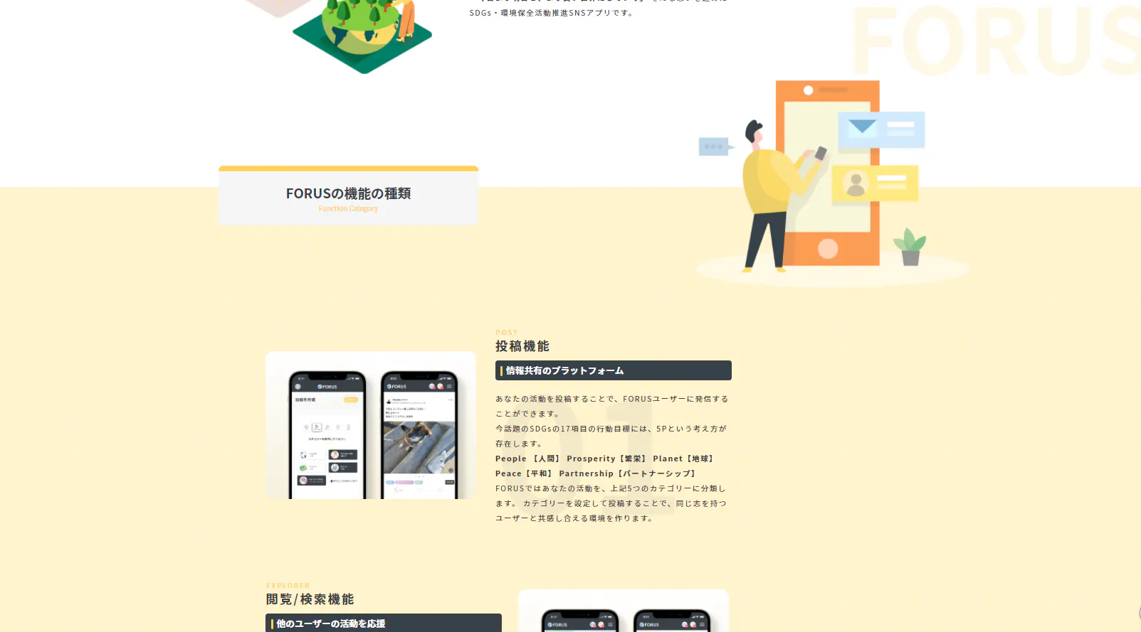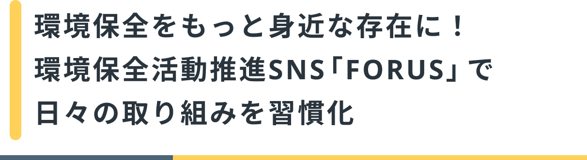 そこでまず、その一歩目として「一人ひとりができる小さな環境保全活動をコツコツと」というコンセプトに環境保全活動推進SNS「FORUS」を開発しています。