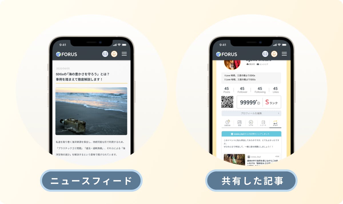「FORUS」では、投稿機能の他にも、環境問題のトピックについて書いた記事を読める「ニュースフィード」という機能を用意しています。
