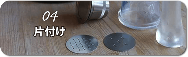 専用のタンパーで誰でも簡単に綺麗に粉を詰められます。