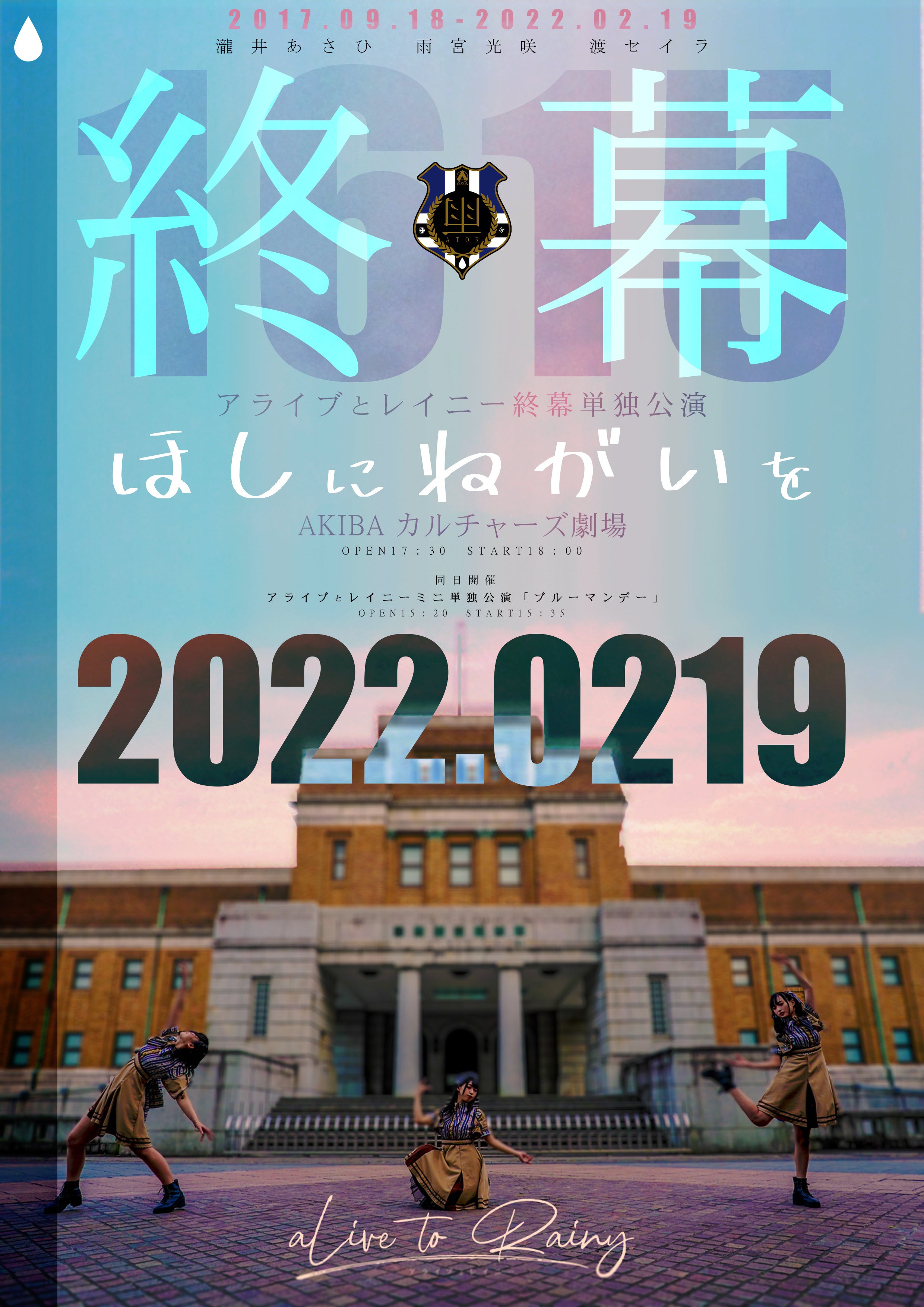 アライブとレイニーは2017年九月より活動を始めたグループで2022年2月19日をもってすべての活動を終演することが決まっております。