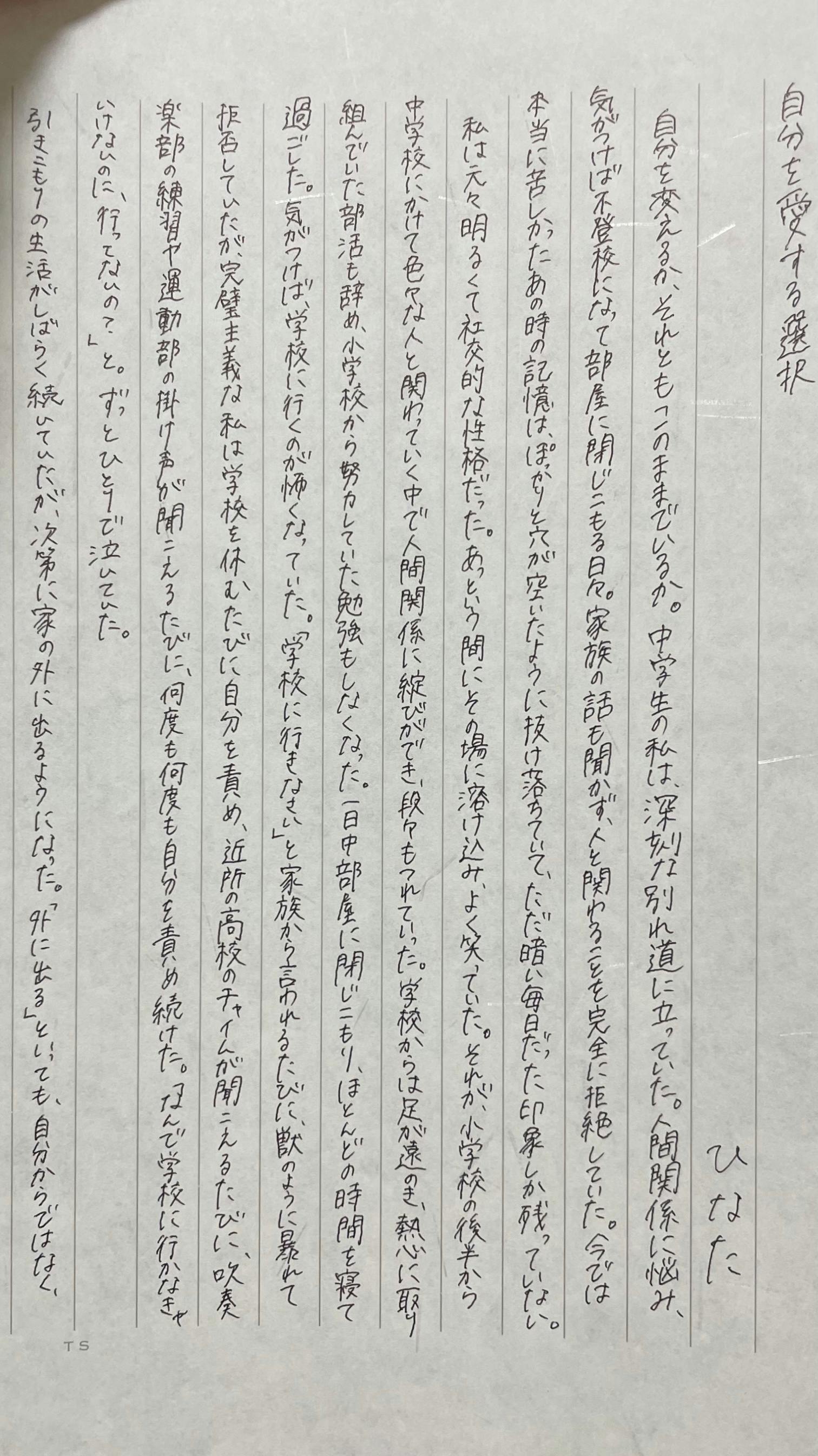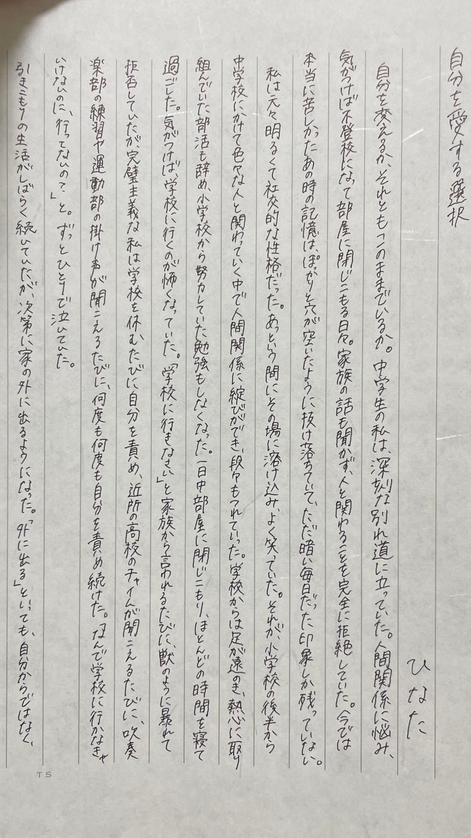 私自身、高校生の頃に友達とのすれ違いを経験し、自分の考え方や価値観が全て間違っているのではないかと、当時は悩み、苦しみ、答えを求めていました。