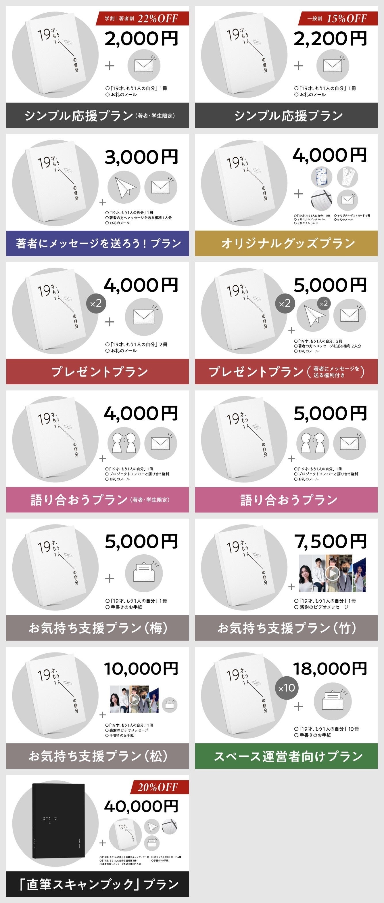 2022/05/30 18:34みなさんこんにちは!『19才、もう1人の自分』代表の佐藤です。タイトルの通り、製本が完了し“本”という形になりました事ご報告させていただきます。今回の本制作プロジェクトにあたり、著者のみなさまやクラウドファンディング支援者のみなさま、メンバーをはじめ、本当に多くの方が携わり出版することができました。本当にありがとうございます!!19才。全国から集まった201人の分岐点。すでに読み始めている方はどのような感想をお持ちでしょうか。大人でも子供でもない曖昧な今。人の数の通り異なる人生や価値観があって、それを受け取るにも異なる。それを個性と言うか、運命と言うか…答えのない世界が広がっています。思い思いに受け取ったものをそのまま感じてください。そしてページをめくる時はゆっくりと。201人の19才が自分と向き合い綴った文章に触れ、いまの、あの頃の、これからの自分を想う時間になること。時に刺激や発見、そして共感や勇気をくれ、自分に正直でいられること。少しでもみなさまの心の支えになれることを願っています。そしてこの本を手に取ってくれた方。プロジェクトに参加してくれた方。応援してくれた方。たまたま見つけてくれた方。全ての方に何らかのプラスの作用が働いてくれたら幸いです。この本が日本各地へ、国を超えて羽ばたいていけるよう今後も活動を続けて参ります。時間はかかると思いますが、大切に丁寧に向き合っていきたいと思います。□本の購入について7月ごろにオンラインで販売できるよう準備を進めています。具体的な詳細は決まり次第お知らせします。今後もよろしくお願いします。 もっと見る