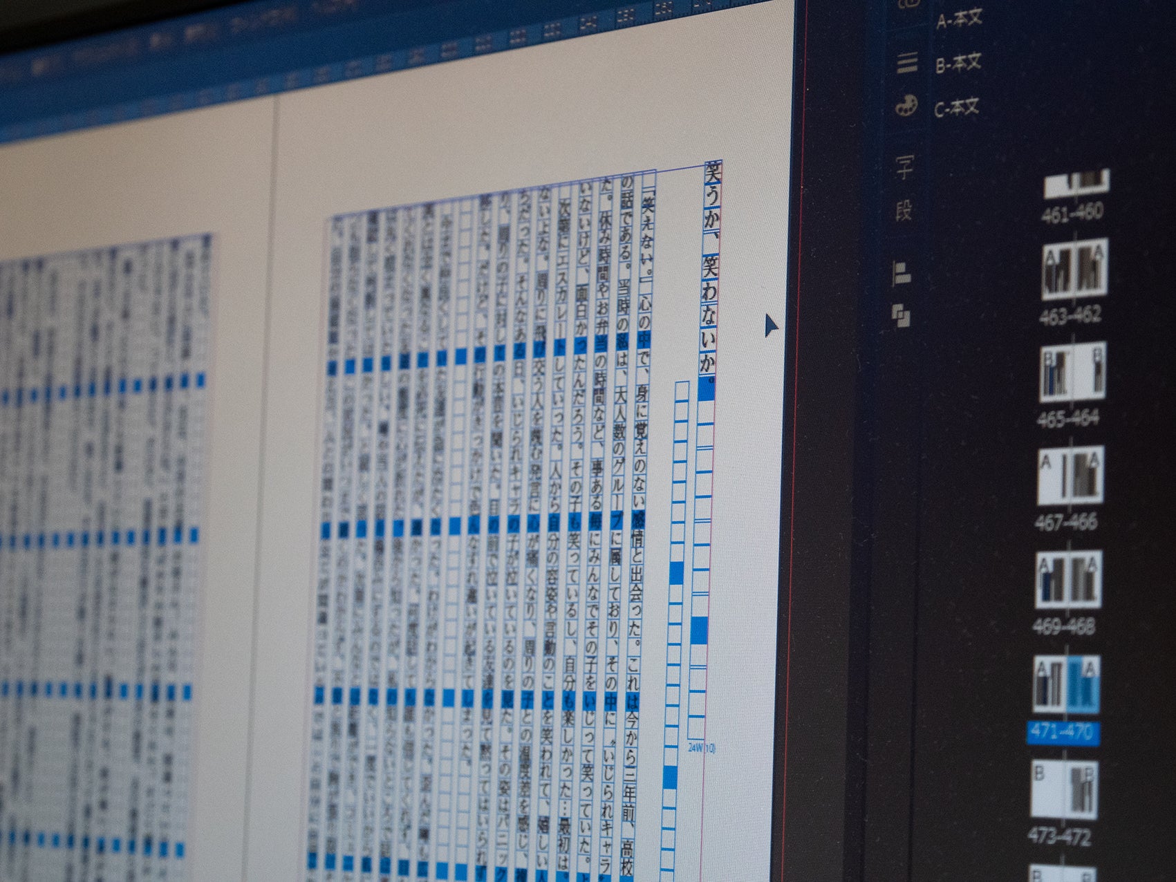 現在は、製本に向けて自分たちで1ページずつ編集をしています。