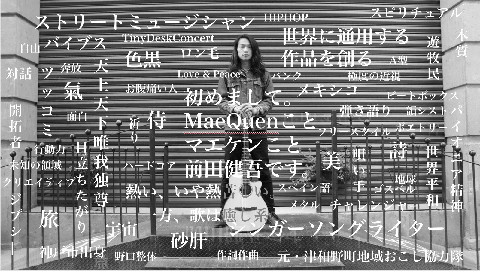 メキシコで、ストリートミュージシャンとして活動している『MaeQuen(マエケン)』こと前田健吾(まえだ・けんご)と言います。