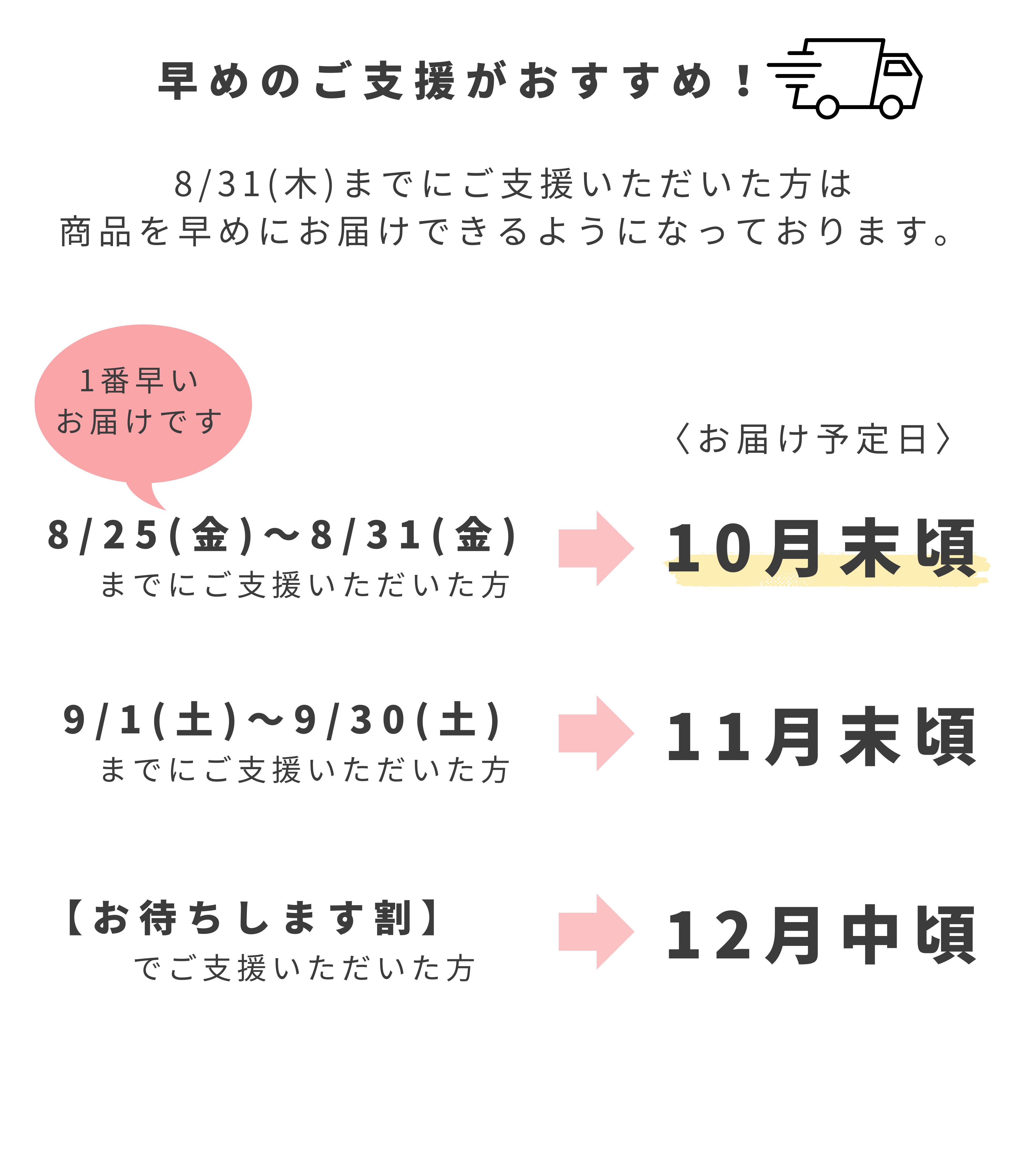 本日8月31日(木)までのご支援の方は、リターンが早く届きます!!