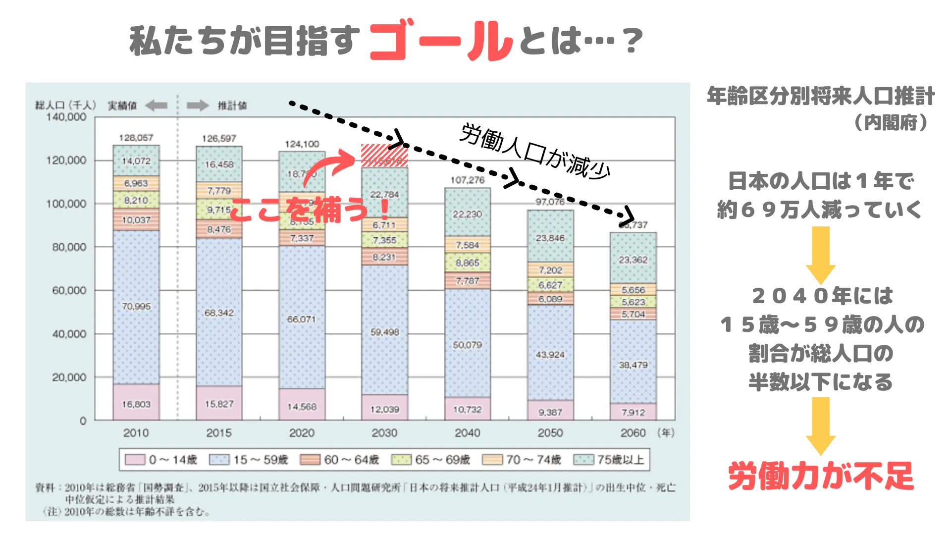 皆さんもご存知の通り日本の人口は年々減少傾向かつ労働人口も減少していきます。