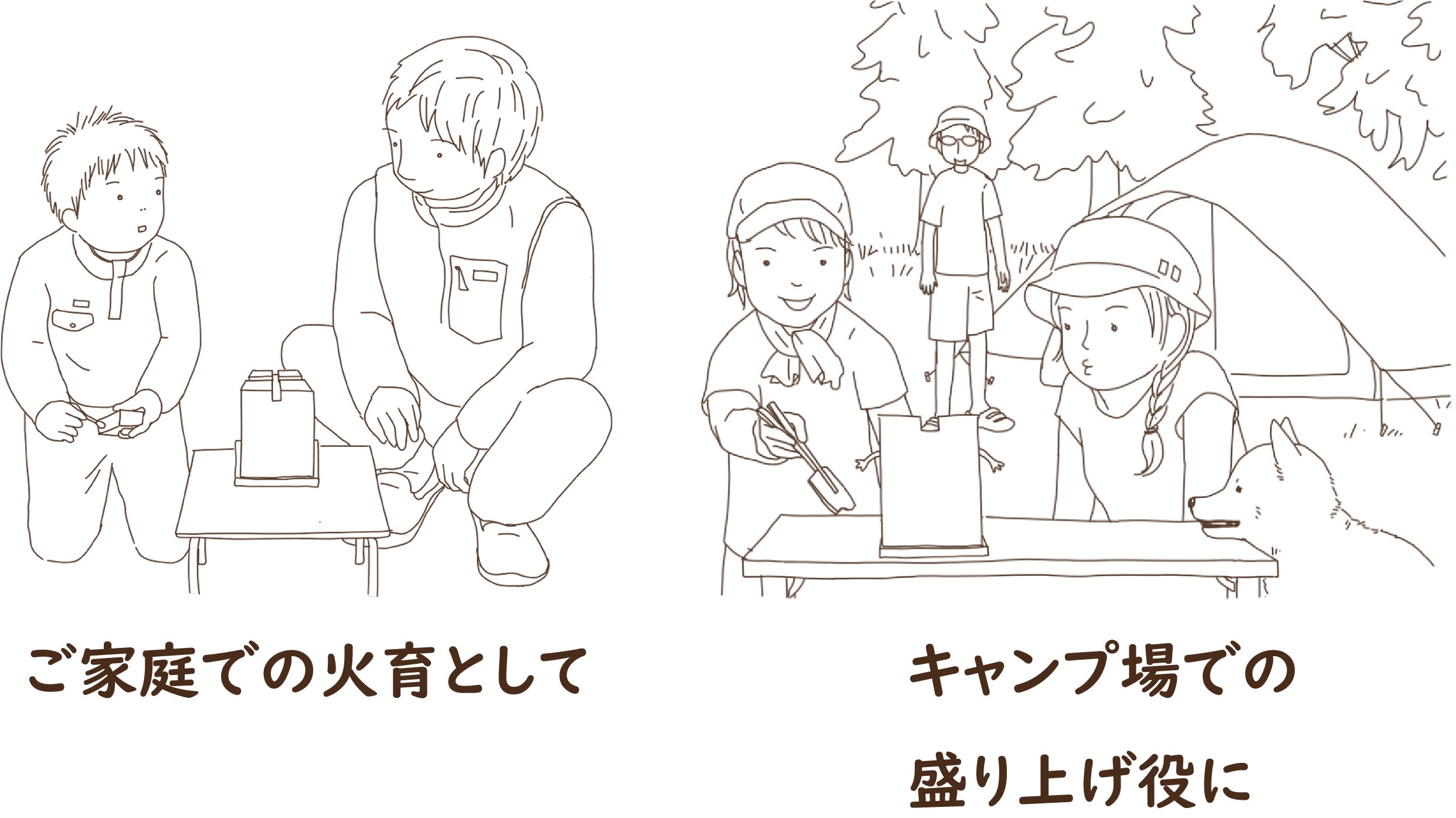 HIASOBIの揺らぐ火を家族みんなで囲んで眺めたり、火の付け方を大人が子どもに教えたり。家族みんながほっこりする時間になること間違いなしです。