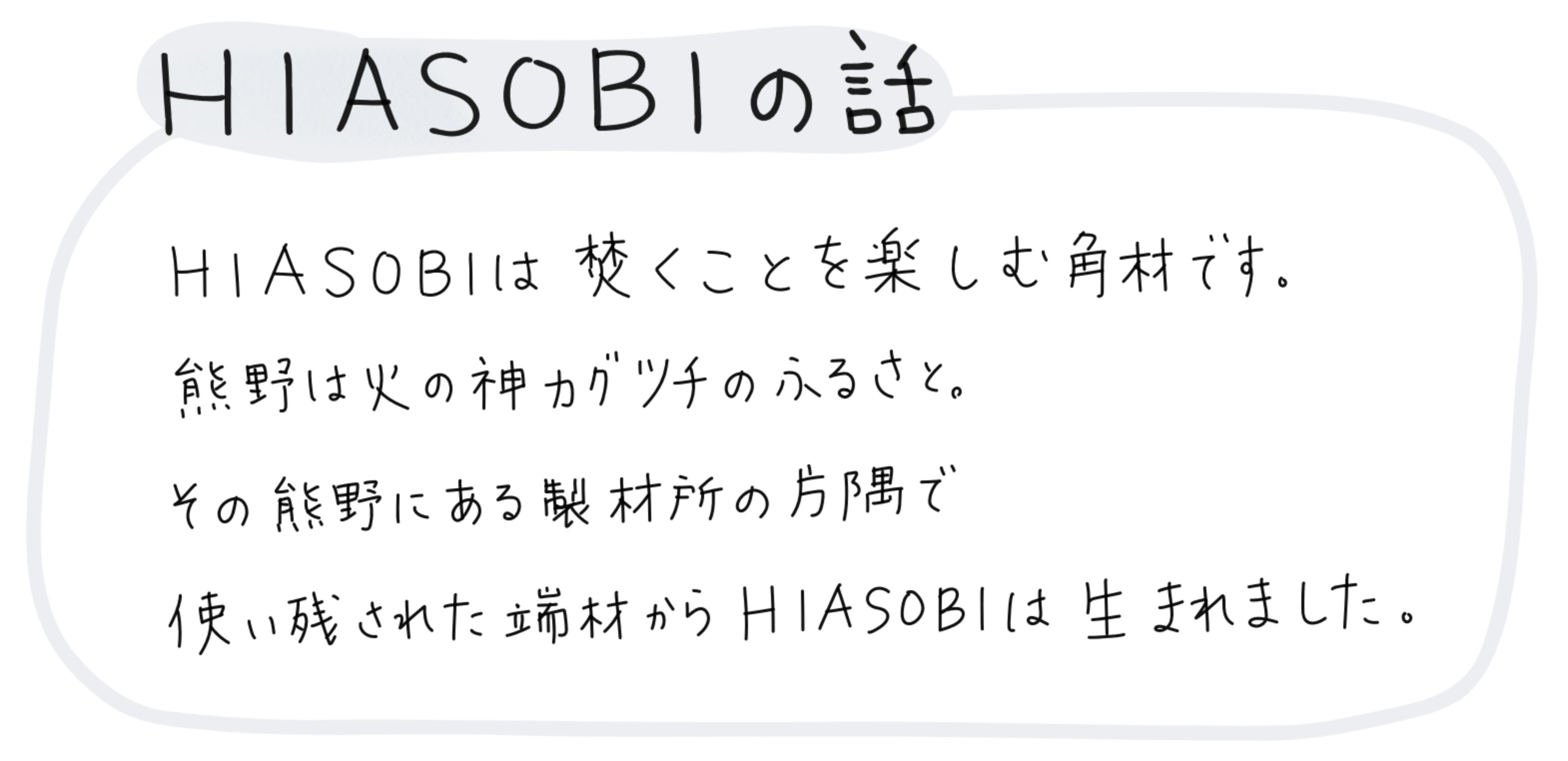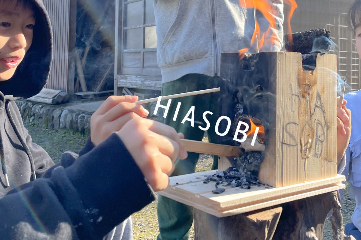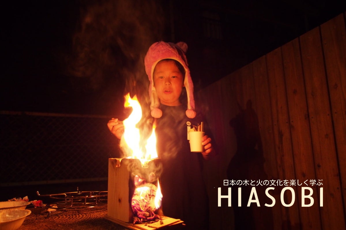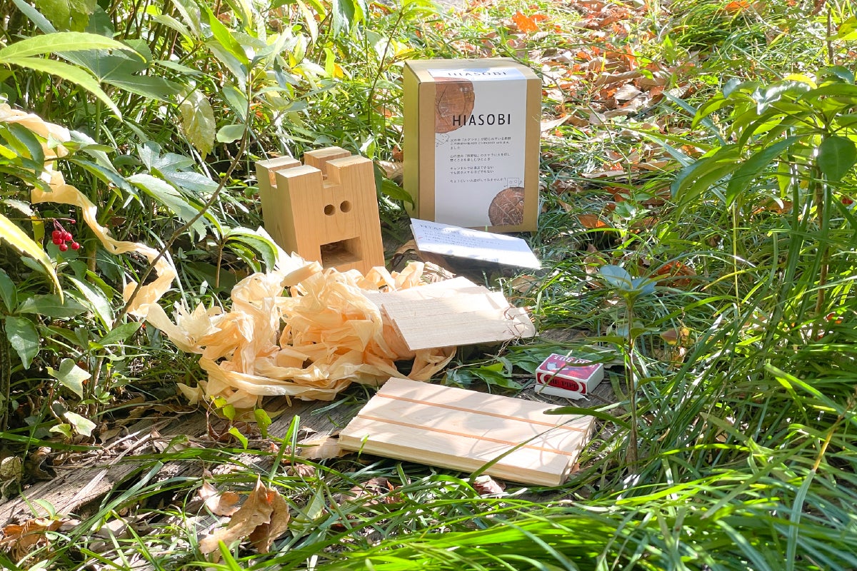 HIASOBIは燃やすだけにあらず。熊野ヒノキのなめらかさや香りを感じることができます。火が着くと、燃え広がるうちにどんどん表情が変わる様子を楽しめます。五感が刺激され、子どもの感性を育みます。
