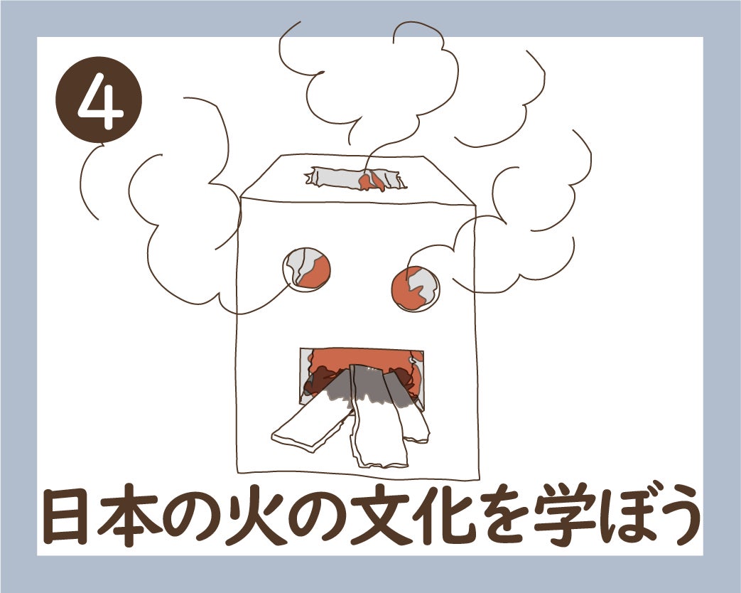 A4.燃やすときに敷く板がもう少し入っているといいなと感じました!付属物や大きさの展開があって、3兄弟「長男・次男・三男」という感じ!で燃やす時間を変えられるようにするのも面白そうだなと思います。