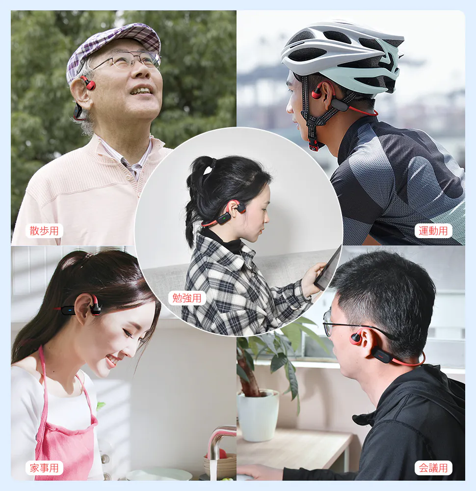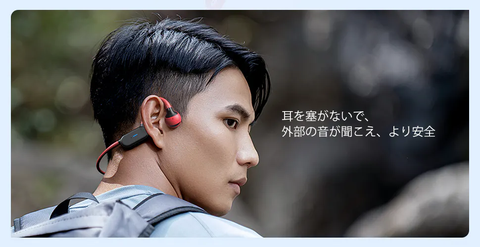 耳を塞がず、骨を振動させて音を伝達する仕組みです。