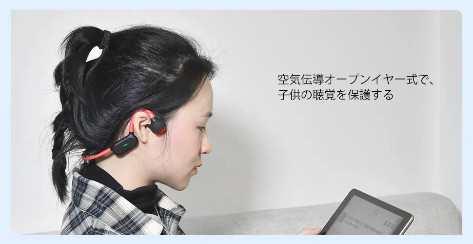 私たちは、世界中のすべての子供達に安全で快適な「聴く環境」を提供し、勉強や趣味を健康的に楽しめること世の中を目指しています。 この目的のために、私たちはWHOが推奨する子供に安全な音量基準に厳密に従って、空気伝導オープンイヤーイヤホンを開発し、下記2つの使用モードを開発しました。