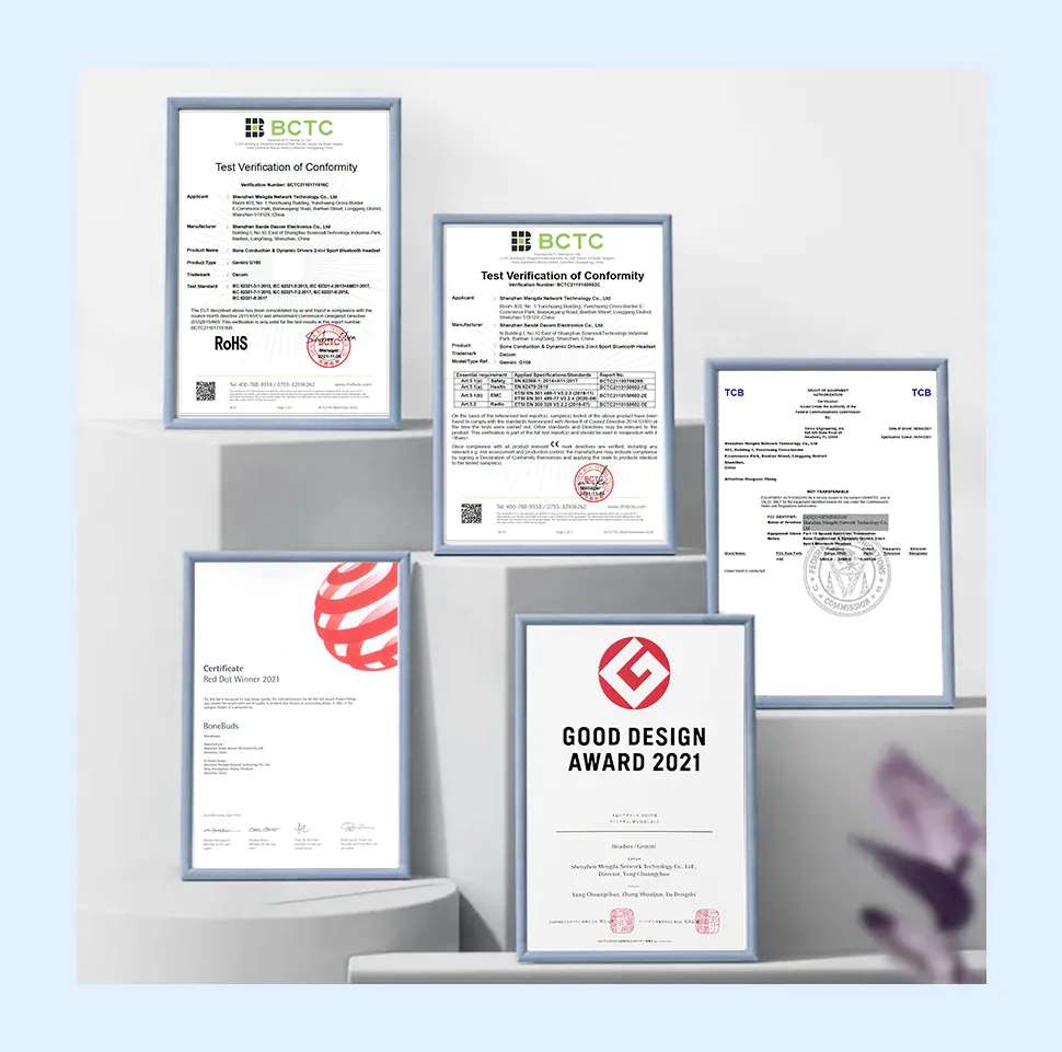 Dacomはプロオーディオの研究開発で20年以上の経験があります。空気伝導で発売されたAirWings耳を塞がないスポーツ用シリーズは、日本で多くの支持者がいます。骨伝導では、骨伝導完全ワイヤレスイヤホンBoneBudsが2021年ドイツのRed Dot Awardを受賞しました。さらに、第1世代のGeminiイヤホンは、2021年の日本グッドデザイン賞を受賞し、EU CE、RoHs、US FCC、日本技適認証などの多くの国際安全認証に合格しました。