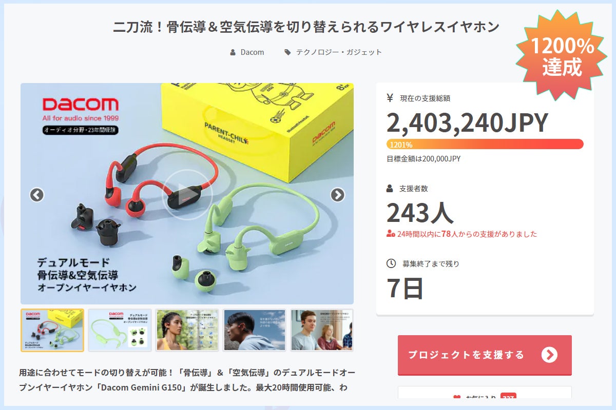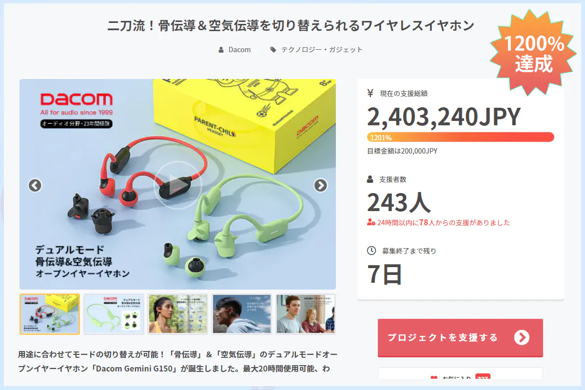 おかげさまで、今回のプロジェクトが1200%目標に達成しました。