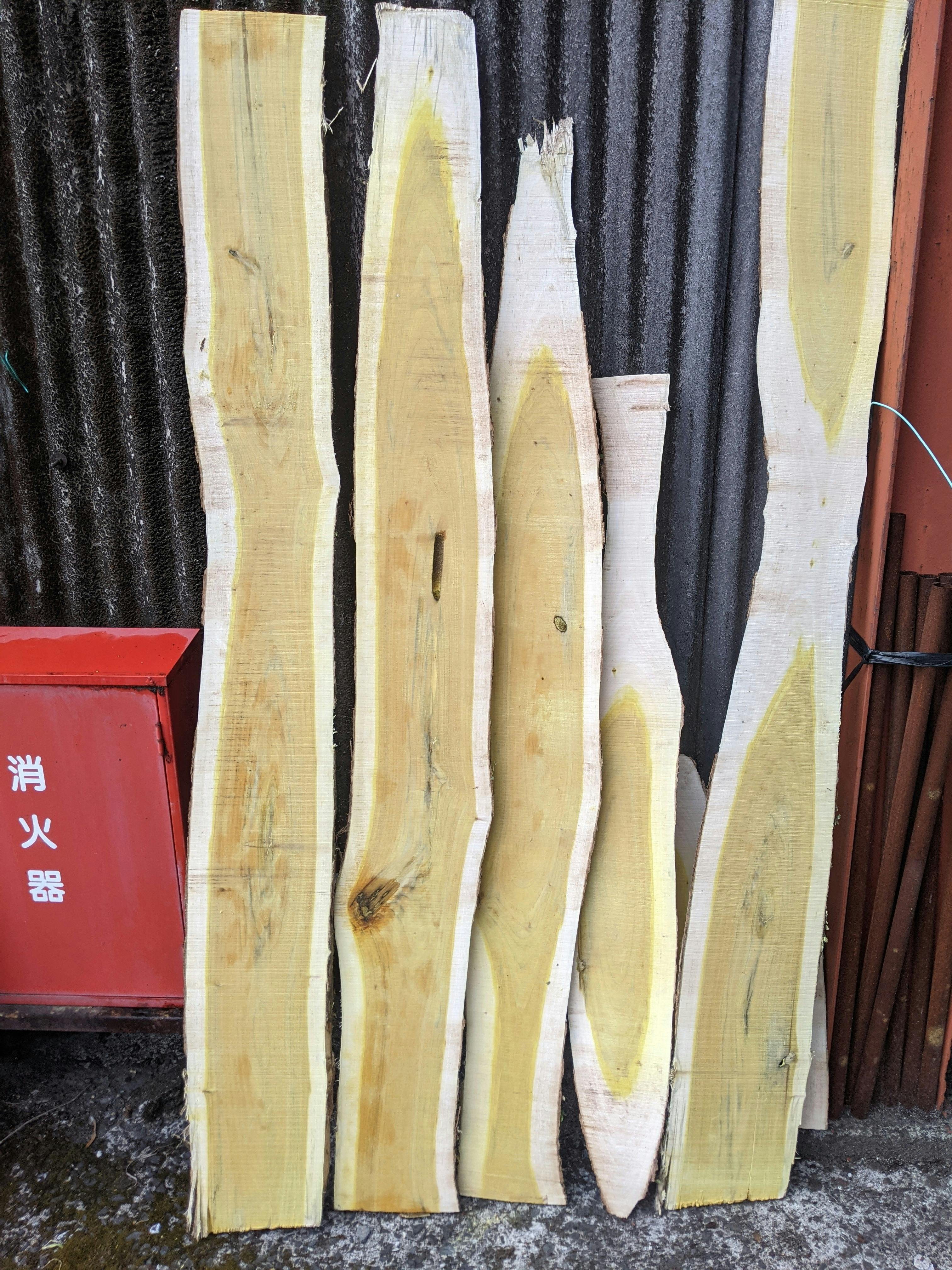 先日受け取ってきたハゼノキですが、サンプルで製材していただきました。曲った木なのできれいな形はしていませんが、注目してほしいのは断面!見事な黄色です。これが染め物の材料として活きてきます。ちなみにハゼノキは水分量が物凄く多いためしばらく外干ししていたにも関わらず断面はかなり湿っています。同族の漆も同様なのですが材木として使うためには3年ほど干す必要があるそうです。このあたりも材木利用が進まない課題でもありますが、用途限定など色々な方法を試したいと思っています!
