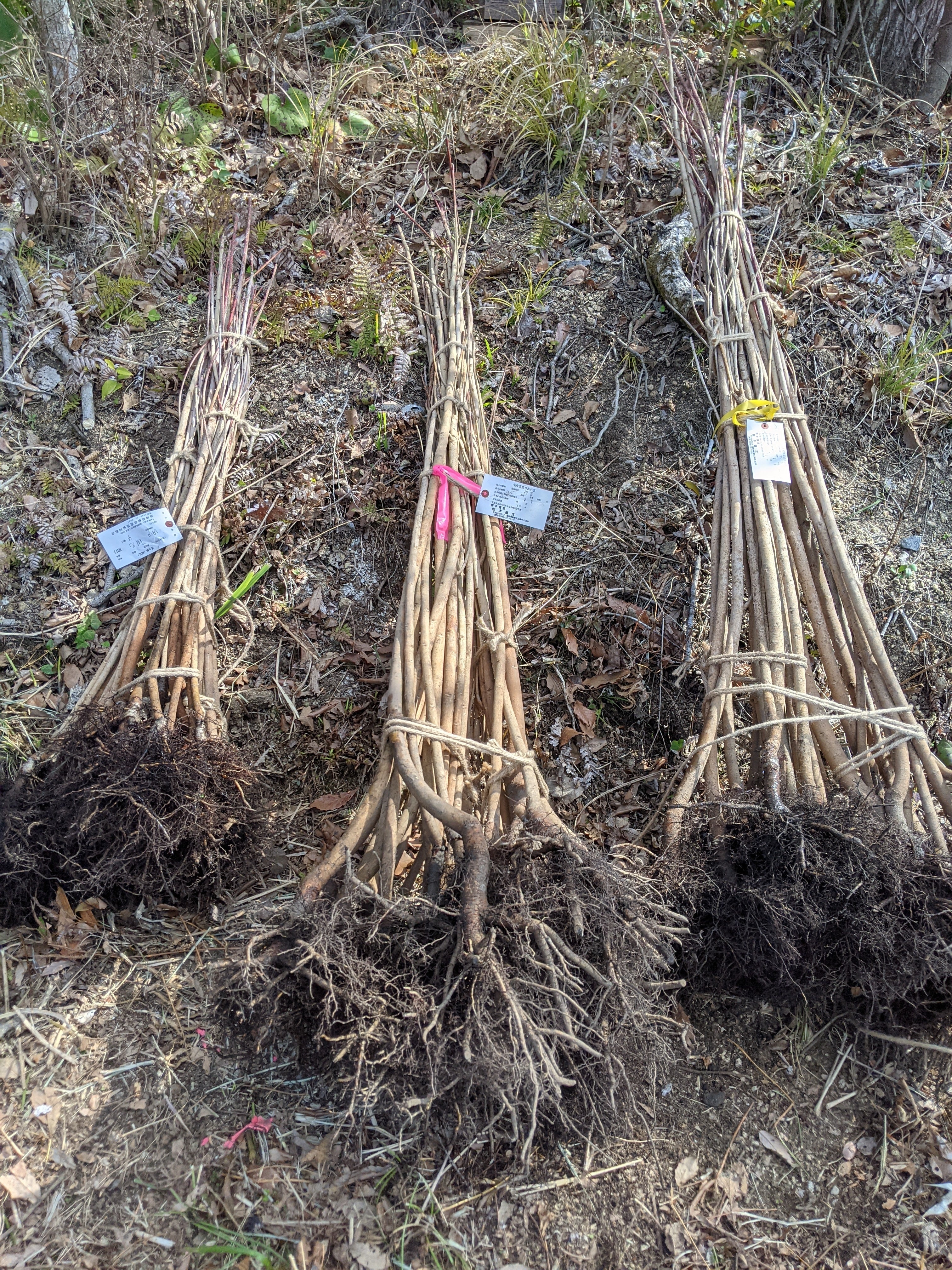 昨日久留米にハゼノキの苗を引き取りに行ってきました!今回引き取った品種は3種類です。写真左から島原原産の昭和福櫨、真ん中が小郡原産の伊吉櫨、右が和歌山原産の葡萄櫨です。みんな大隅半島から旅立ち成長した優良種で、再び大隅半島に里帰りしてきてくれました!今日と明日二日間かけて整備してきた里山に植林していきます!