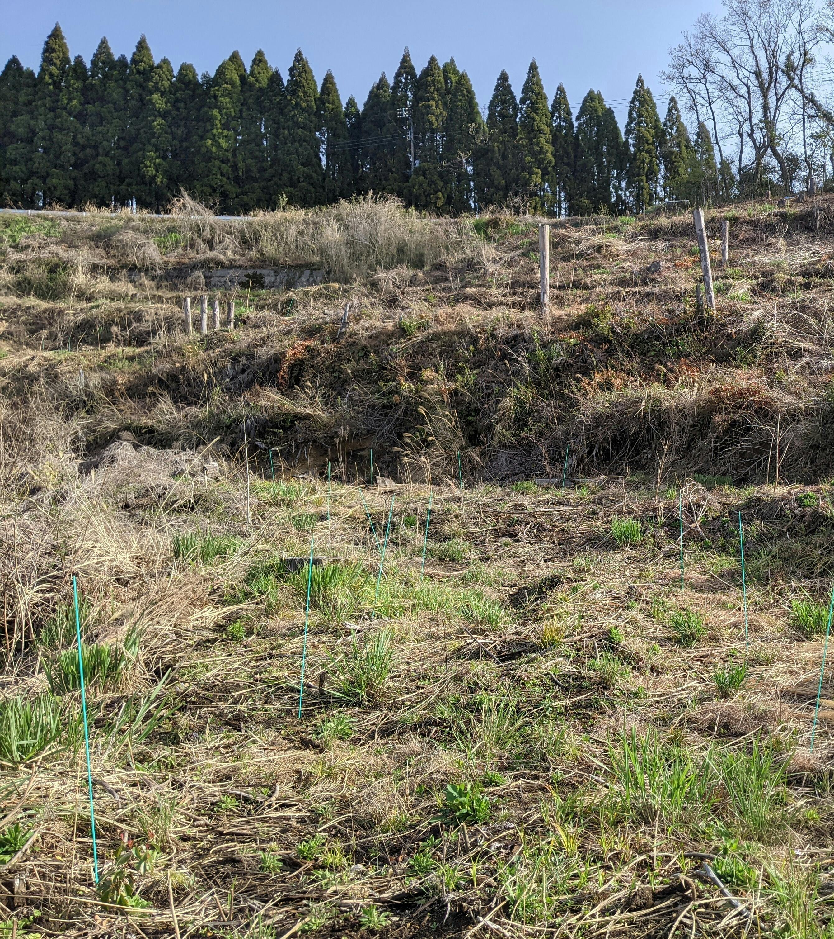おはようございます。昨日の雨とうってかわって快晴です!今日はいつもと逆で植林→地おこしの順番で活動していきます!今日もホトトギスがずっと鳴いてる素晴らしい環境で山仕事です。