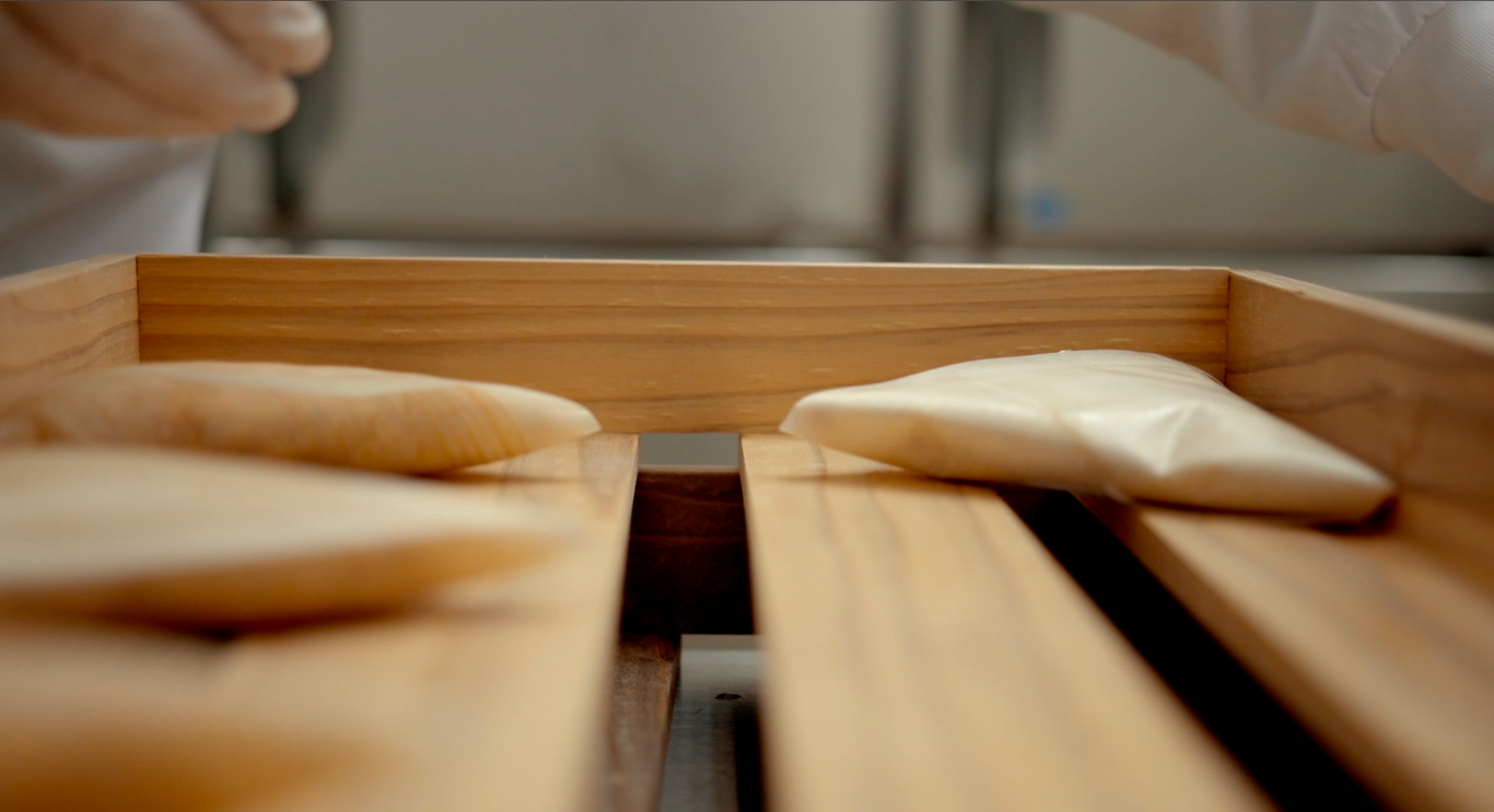 当店は栃木県・那須塩原で天日干しした赤松で包み発酵させます。