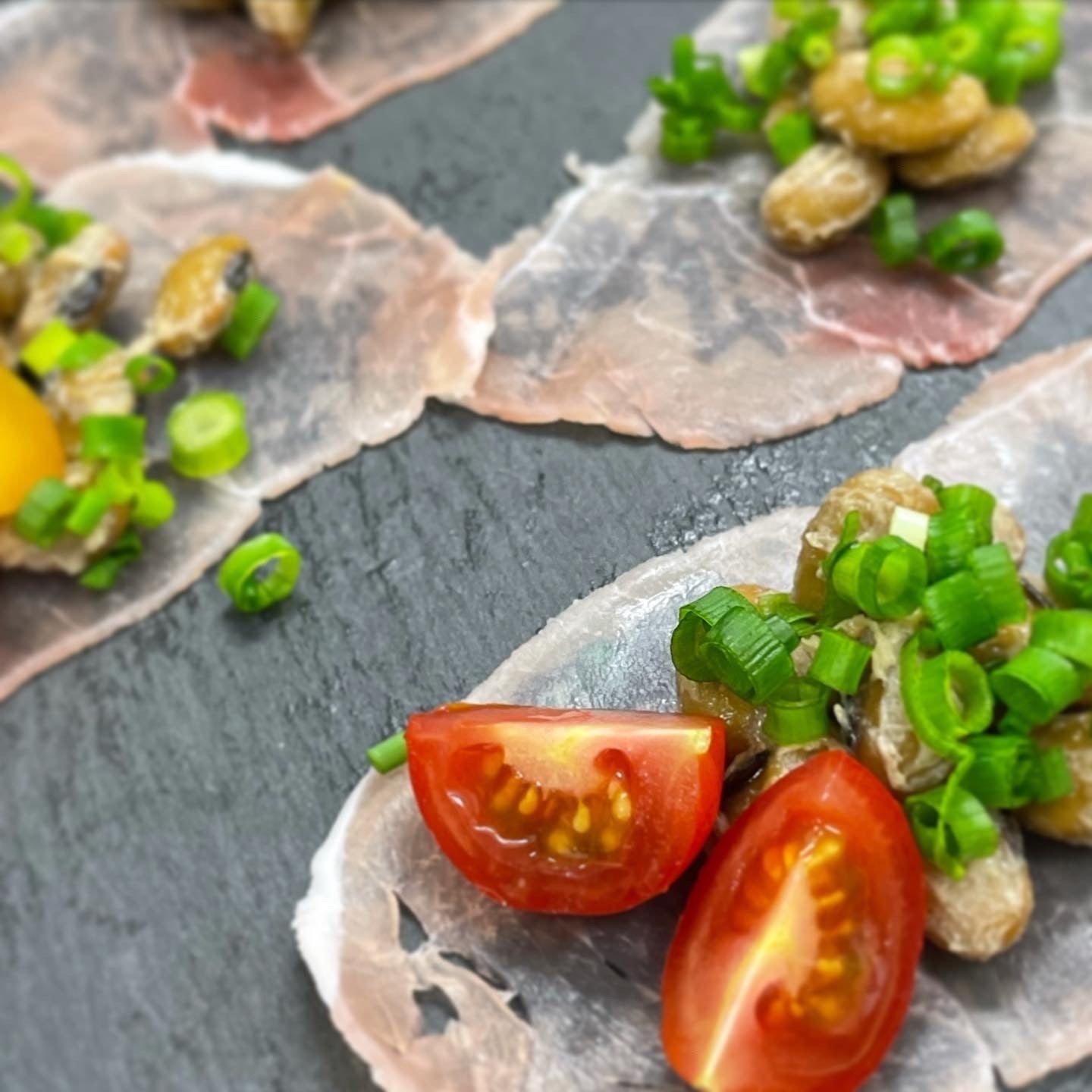 生ハムと青畑納豆