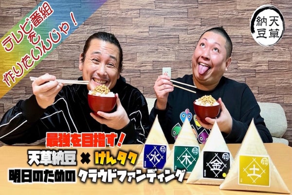 その中でちょうど当店がクラウドファンディングを2月か3月に挑戦すると決めて、けんいちろうさんも拓さんも番組をやりたいというご意向をお持ちでしたので、それならうちのクラウドファンディングのリターンで集まったお金で、原価以外の分は製作費にしますので、番組出来たら面白いですし、コロナなんかで中止とか!なんか嫌なんで、けんいちろうさん、拓さんに気に入っていただいてます、当店の納豆を皆様に食べてもらって何とかならないかなと思い、挑戦させていただく事にしました。