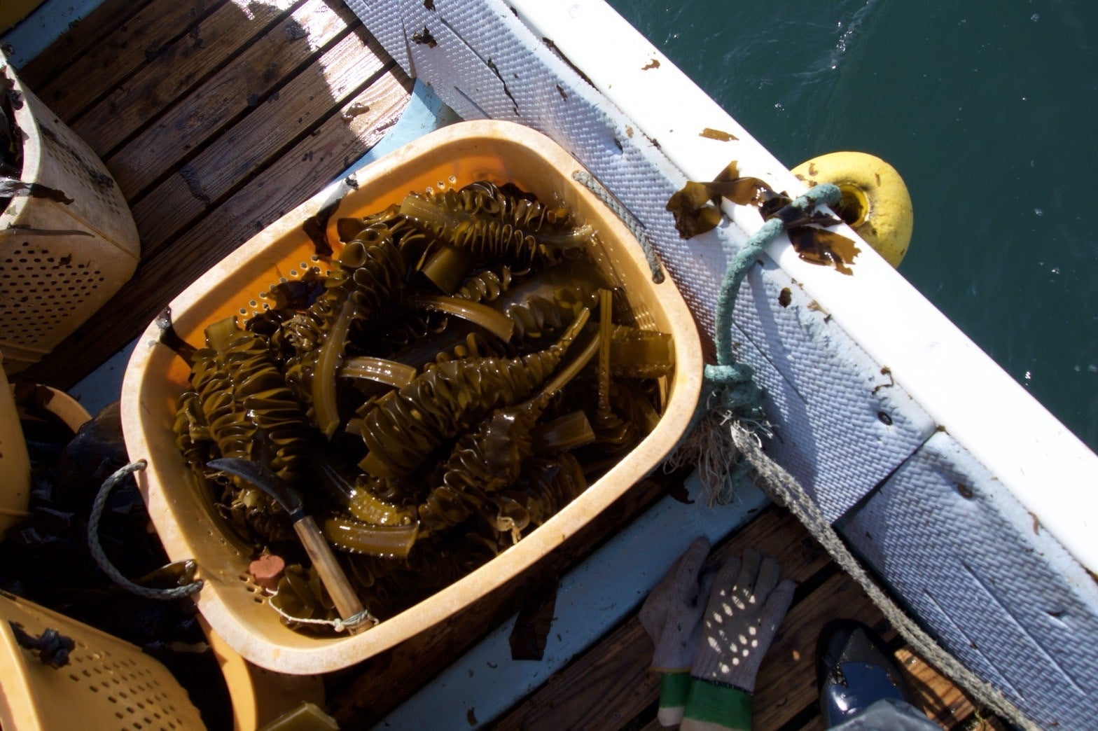 周りのビラビラの部分がメカブです。それを削いだ後の茎の部分を貰います。