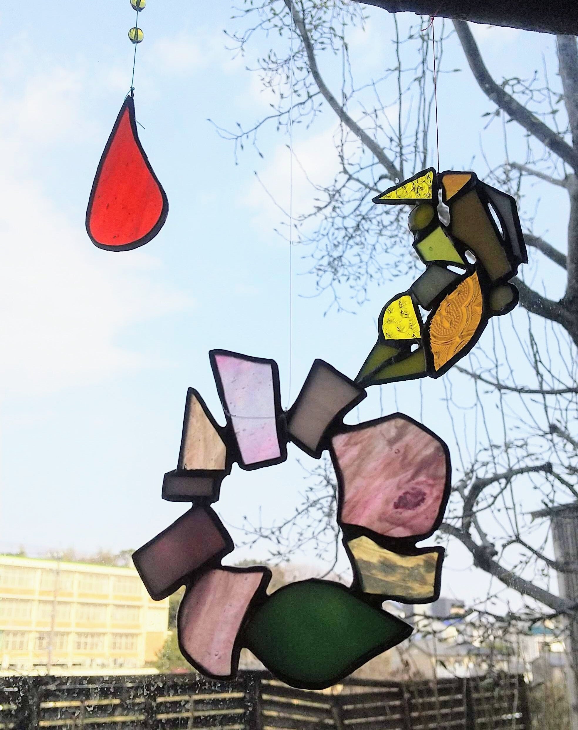 ステンドグラスのガラスもとても面白い色合いがあり、ガラスを選ぶ時