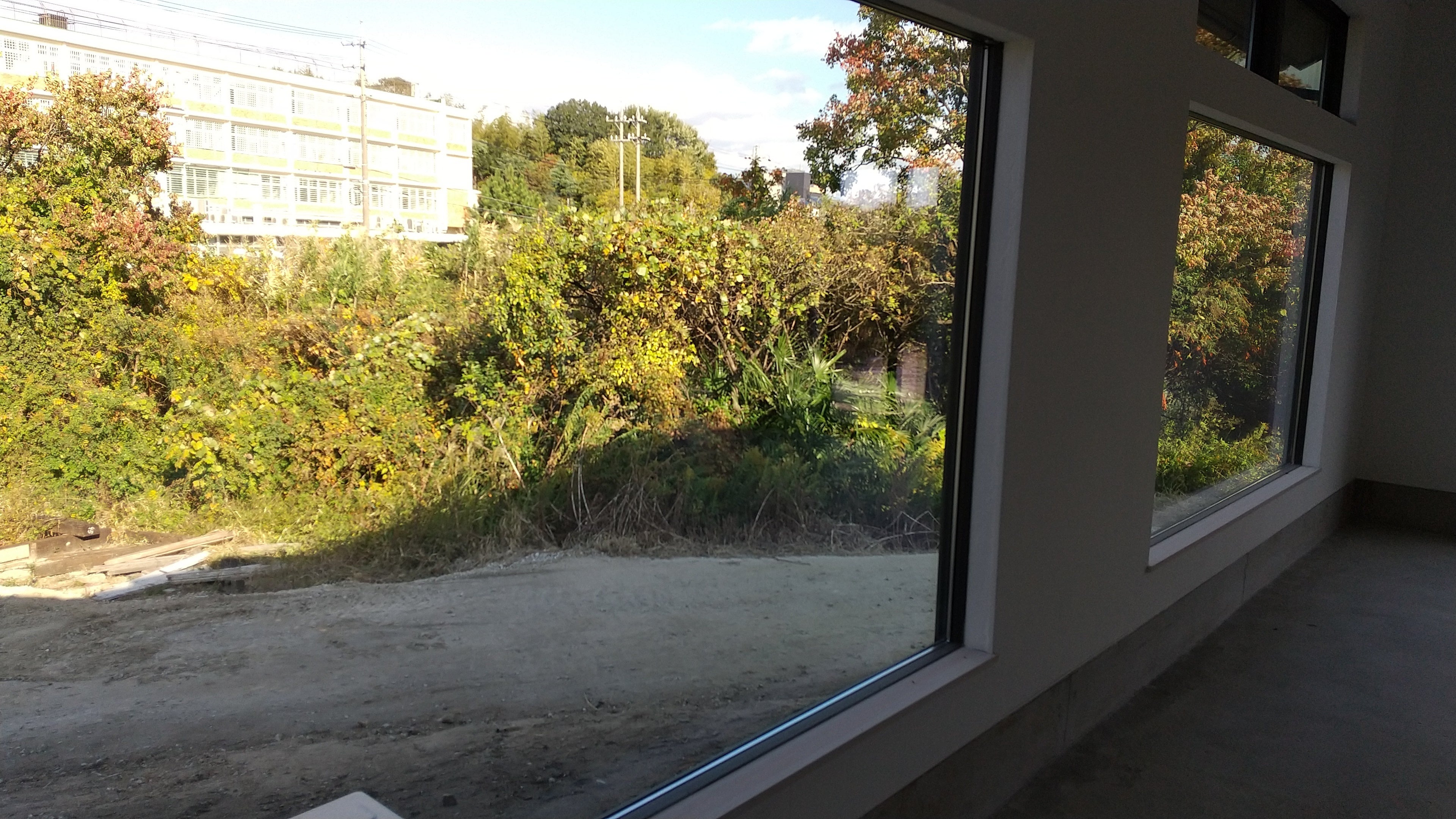 今の季節は、新しい施設から、隣の敷地に立つ南京ハゼの木の紅葉がとても綺麗です。そんな自然をいっぱい感じれる外席をつくりたいと考えています。