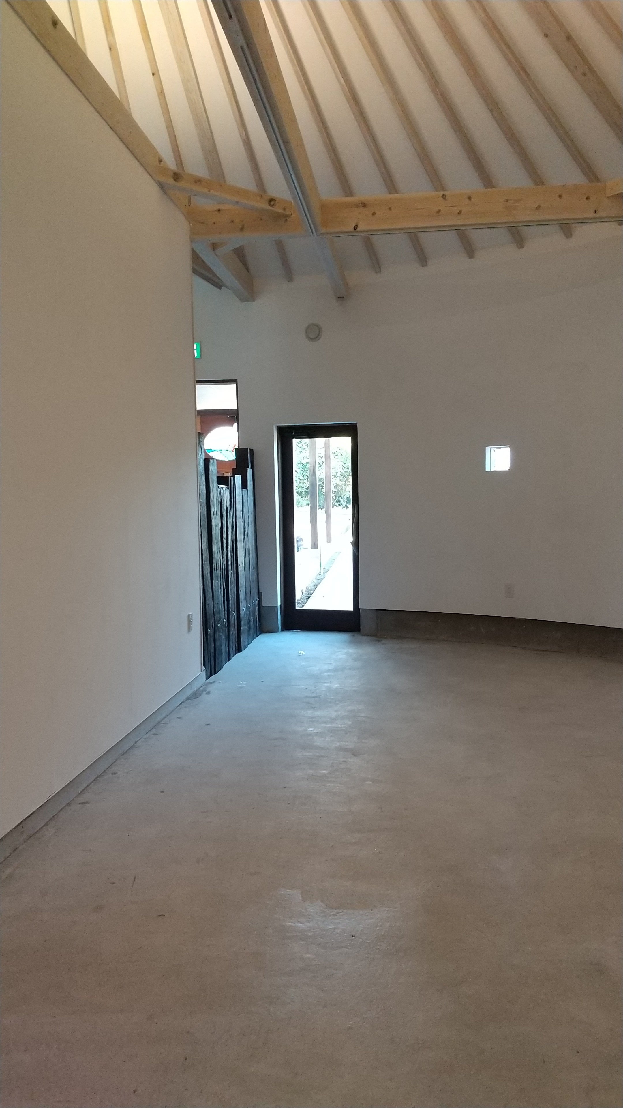 ギャラリーの内装も済みました。半円状の展示部分は、カフェ入り口から見渡すことができ、訪