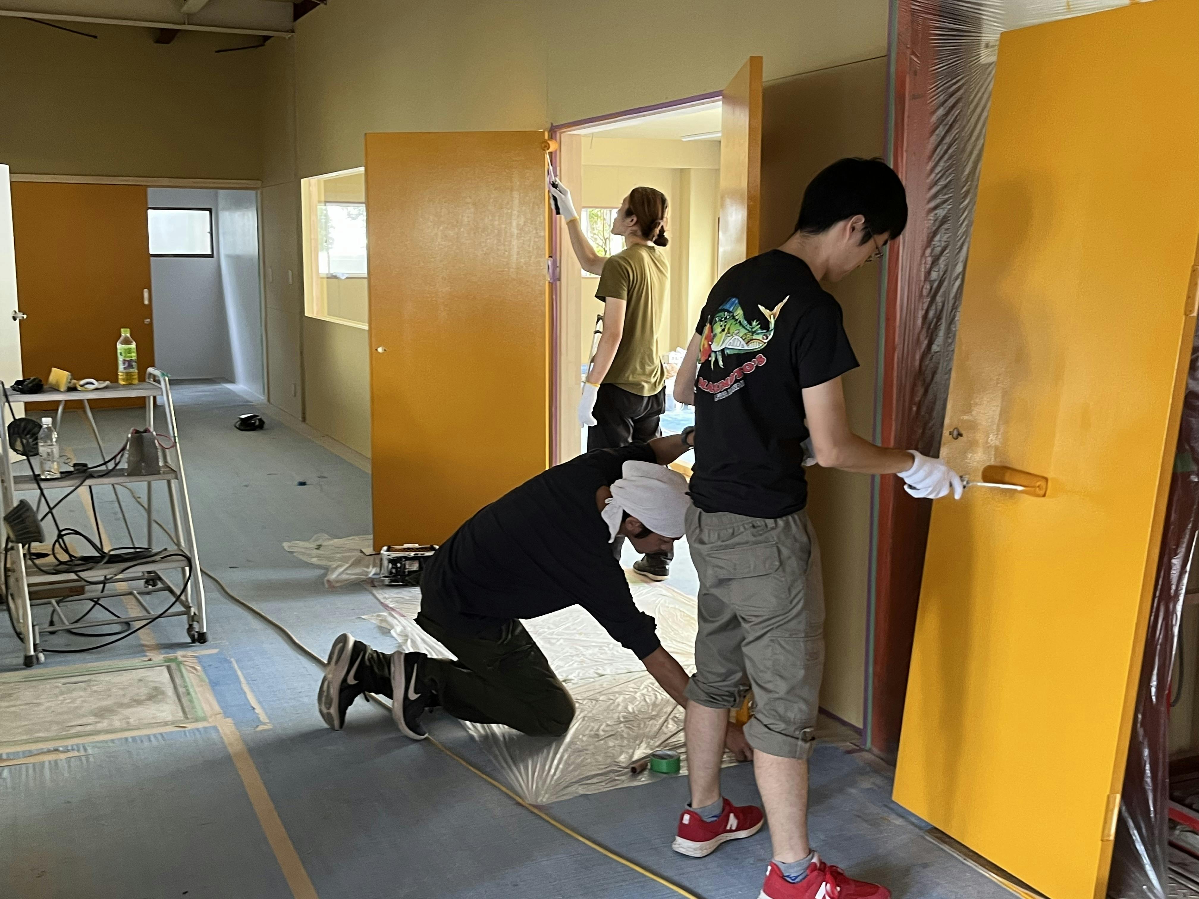 NODATEがご縁で友人になった神林師匠(本職内装施工)と日米学生会議のメンバーは、関東からDIYの手伝いに駆けつけてくれた!