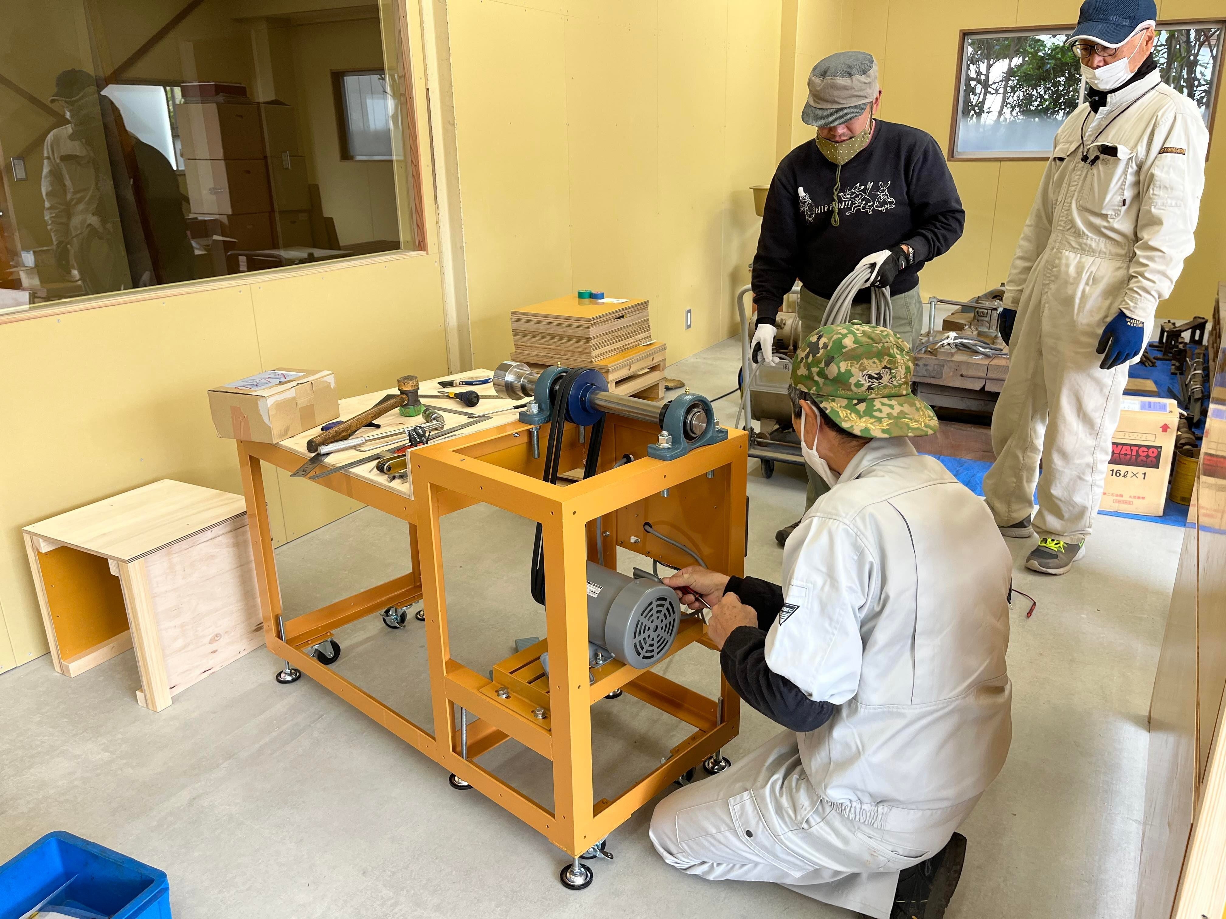 11月中旬には、重箱や家具など板を切ったりカンナがけしたり組んだりして作る「板物系」を作るための機械たち(昇降盤、超カンナ、ルーターetc)10台程度が運び込まれます。