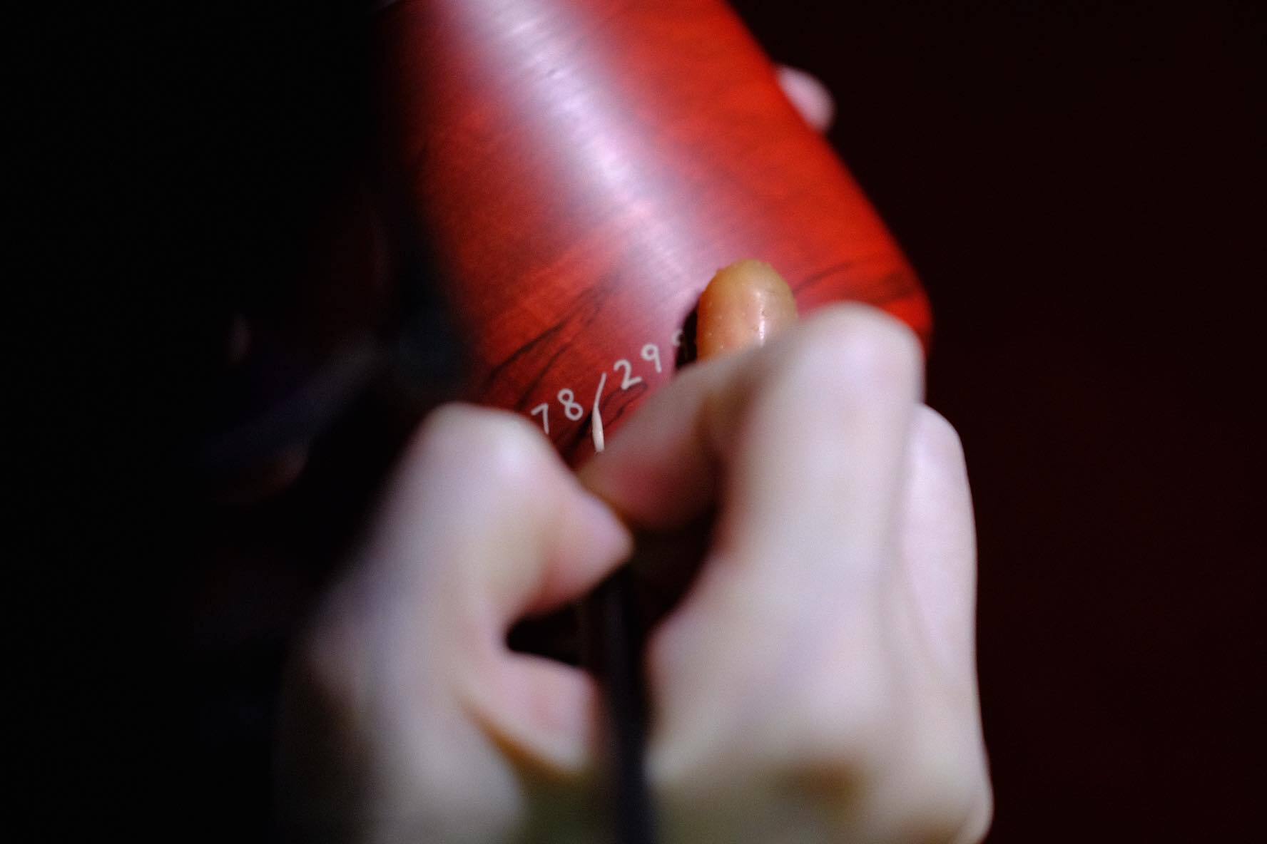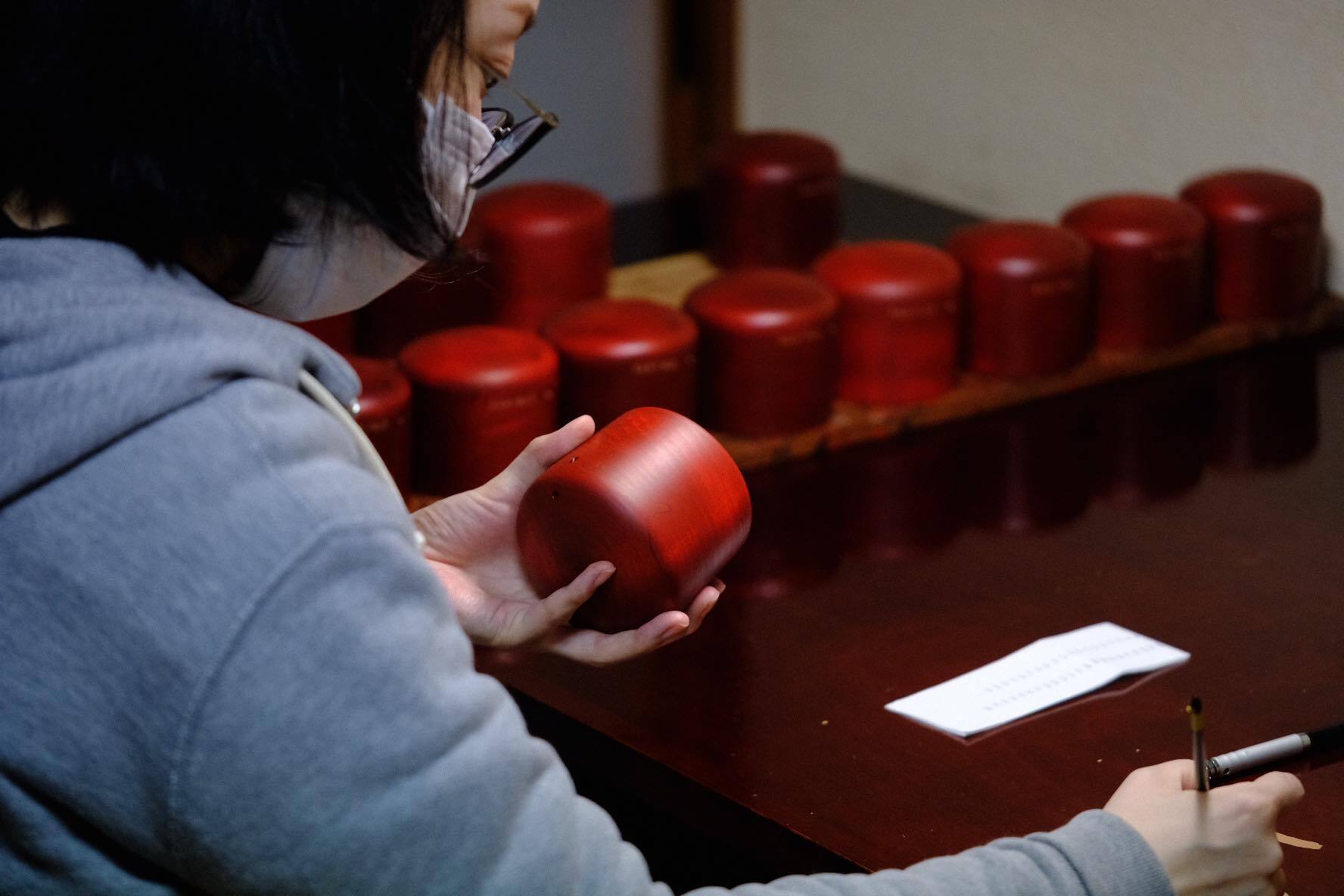 一つ一つ手描き。シリアルナンバーを白漆で描きました。